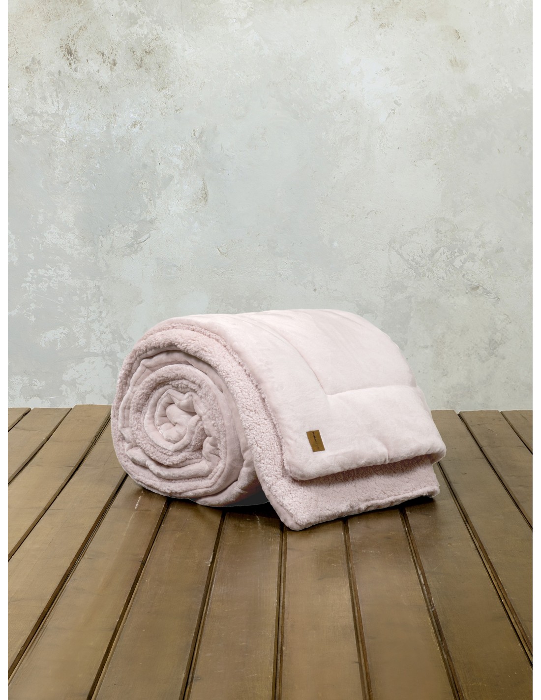 Το Κουβερτοπάπλωμα Cira Nude Pink συνδυάζει τη ζεστασιά και την πολυτέλεια με μια μοντέρνα αίσθηση. Η πάνω πλευρά του είναι κατασκευασμένη από μονόχρωμο flannel, προσφέροντας απαλή και πολυτελή αίσθηση, ενώ η κάτω πλευρά είναι καλυμμένη με sherpa, παρέχοντας εξαιρετική θερμότητα και άνεση. Το απαλό ροζ χρώμα του δίνει μια ρομαντική νότα στο υπνοδωμάτιό σας, δημιουργώντας 'εναν ζεστό και φιλόξενο χώρο. Το κουβερτοπάπλωμα αυτό είναι ιδανικό για τις πιο κρύες νύχτες, καθώς η πλούσια βελουτέ υφή του και η αφράτη και ζεστή αίσθηση της sherpa, εξασφαλίζoυν ένα πραγματικό χουχούλιασμα στο κρεβάτι σας.