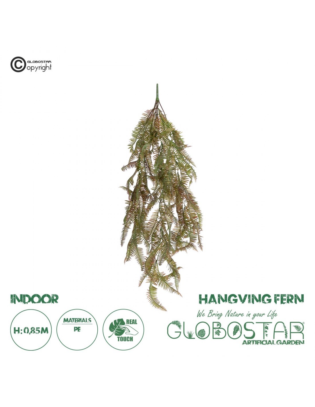 GloboStar® Artificial Garden HANGING FERN BRANCH 20832 Τεχνητό Διακοσμητικό Κρεμαστό κλαδί Φτέρης Μ30 x Π8 x Υ87cm