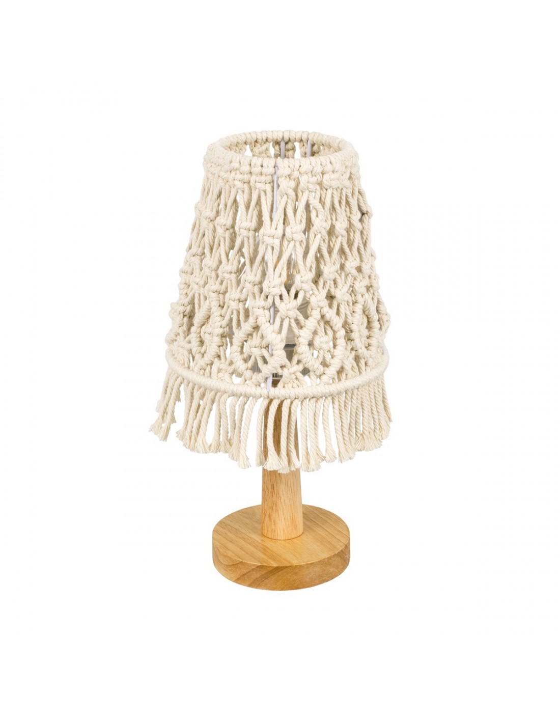 GloboStar® RWANDA 36210 Vintage Επιτραπέζιο Φωτιστικό Πορτατίφ Μονόφωτο Boho - Μακραμέ Πλεκτό Χειροποίητο Μπεζ Υφασμάτινο με Σχοινί Φ15 x Υ30cm