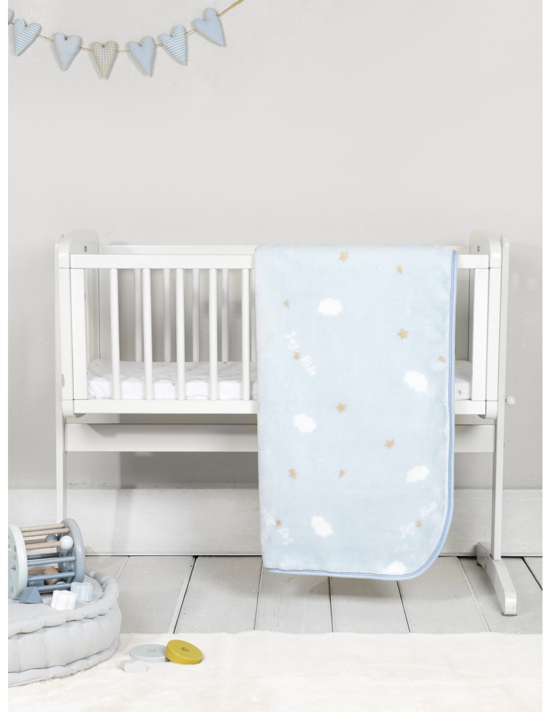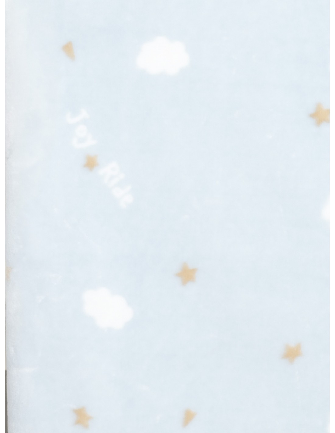 Η βελουτέ κουβέρτα κούνιας Joy Ride έχει σχέδιο που απεικονίζει έναν ήρεμο, γαλάζιο ουρανό, με διάσπαρτα απαλά λευκά σύννεφα και λαμπερά αστέρια. Στο κέντρο της κουβέρτας, η λέξη "Joy" με μια κομψή καλλιγραφική γραμματοσειρά, προσθέτει μια αίσθηση τρυφερότητας και αισιοδοξίας. Η κουβέρτα ολοκληρώνεται με μια κλασική καρό μπορντούρα σε αποχρώσεις του γαλάζιου και του λευκού, η οποία πλαισιώνει το σχέδιο και προσδίδει μια παιχνιδιάρικη πινελιά. Η κουβερτούλα λίκνου έχει πιό λιτό αλλά το ίδιο ευχάριστο σχέδιο, καθώς απεικονίζει έναν γαλάζιο ουρανό με λευκά συννεφάκια και χρυσά αστεράκια. Ο συνδυασμός χρωμάτων και σχεδίων προσφέρει ένα κομψό και ταυτόχρονα παιδικό αποτέλεσμα, ιδανικό για κάθε βρεφικό δωμάτιο.