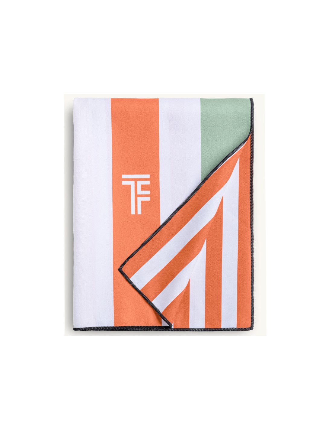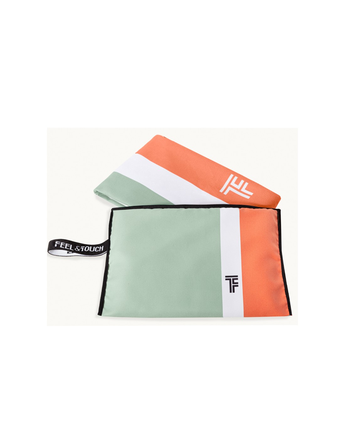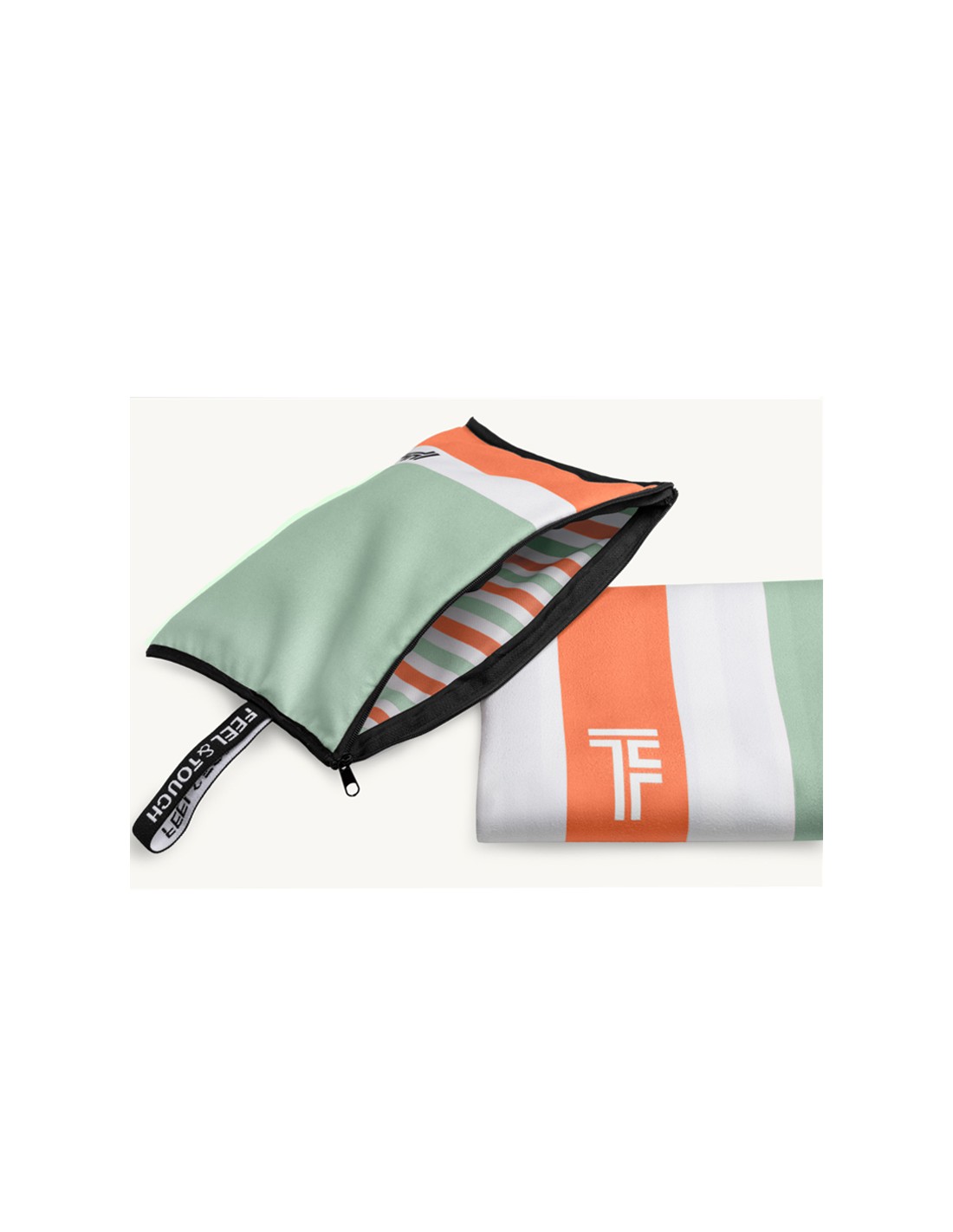 Πετσέτα θαλάσσης από την νέα και ανανεωμένη καλοκαιρινή συλλογή της Feel & Touch. Οι πετσέτες “Med” είναι compose, κατασκευασμένες από 83% Polyester – 17% Polyamide με ραφή από κοπτοράπτη του ίδιου χρώματος. Οι συγκεκριμένες πετσέτες είναι δύο όψεων με διαφορετικό digital print ρίγες στην κάθε τους μεριά. Διατίθενται σε μεγάλη ποικιλία χρωμάτων μαζί με την θήκη τους, η οποία είναι κατασκευασμένη από το ίδιο υλικό με την πετσέτα καθώς και ίδιο digital print. Έχει την δυνατότητα κλεισίματος με velcro και αποσπώμενο λάστιχο με το logo της Feel & Touch το οποίο μπορεί να χρησιμοποιηθεί για να τυλίγετε και την πετσέτα σας κατά την μεταφορά. Μαζί με τις πετσέτες “Med” έχετε την δυνατότητα να προμηθευτείτε και τα αντίστοιχα “Pouch” της ίδιας συλλογής, όπου είναι κατασκευασμένα με ειδική επεξεργασία αδιαβροχοποίησης για να είναι water resistant και φερμουάρ για την μέγιστη ασφάλεια των πραγμάτων σας. Διάσταση Πετσέτας: 85×170εκ. – Διάσταση Pouch: 26×17εκ.