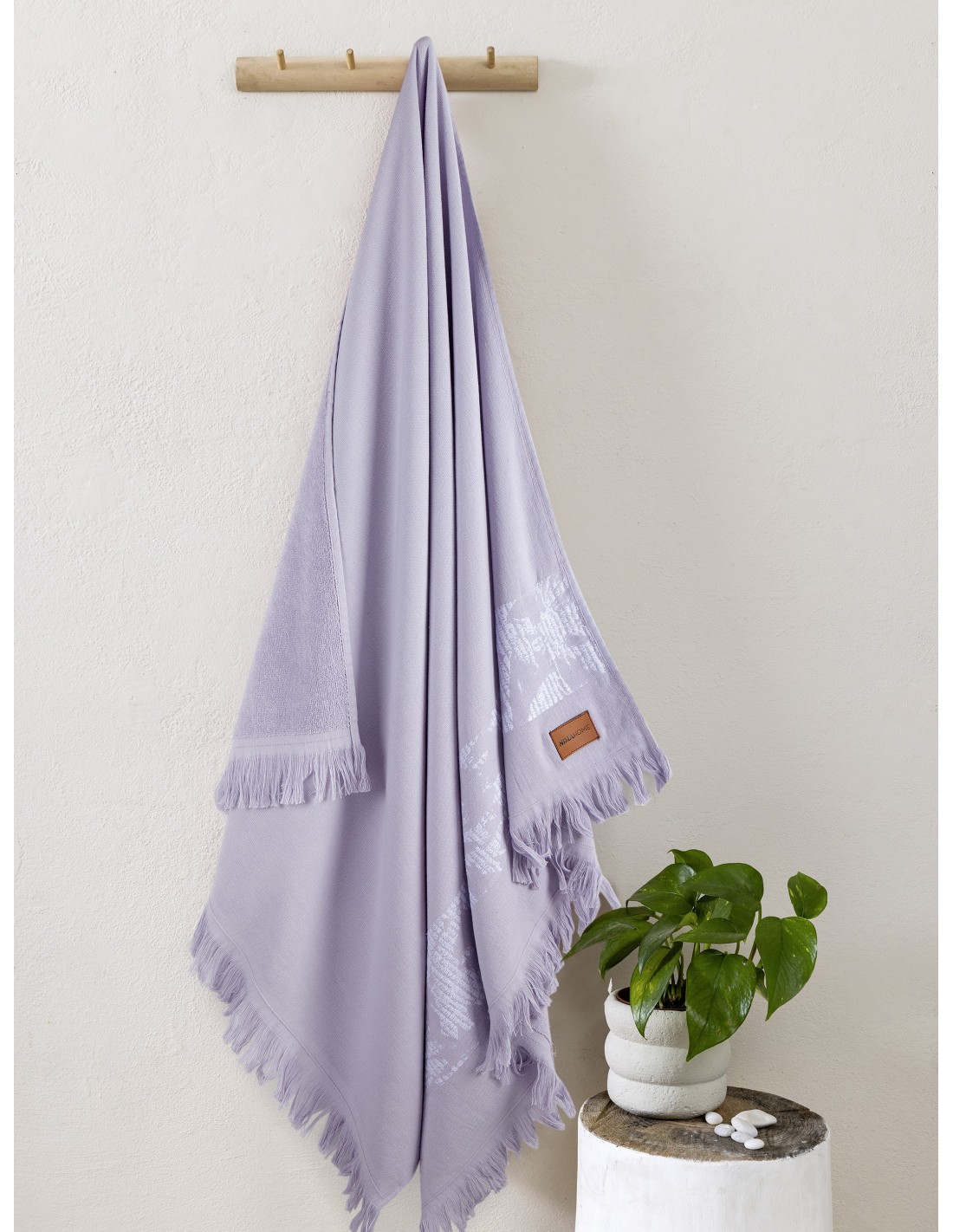 Η βαμβακερή πετσέτα θαλάσσης - πεστεμάλ Hula έχει υπέροχη μαλακή υφή και είναι πολύ εύκαμπτη, δίνοντας την δυνατότητα να φορεθεί και σαν παρεό. Η jacquard φάσα στο τελείωμά της διαθέτει ένα abstract μοτίβο, που της δίνει ένα ανάλαφρο και μοντέρνο ύφος. Διακριτικά κρόσσια στο τελείωμά της, δίνουν κίνηση και ταιριάζουν άψογα με την φυσική της υφή και το στιλ της. Το λιλά χρώμα της είναι χαρούμενο και φωτεινό, αγαπημένο για τις ξέγνοιαστες στιγμές στην παραλία. Είναι μια πετσέτα εξαιρετικά απαλή και απορροφητική, ιδανική για να προσφέρει στις καλοκαιρινές σας αποδράσεις άνεση και στυλ!