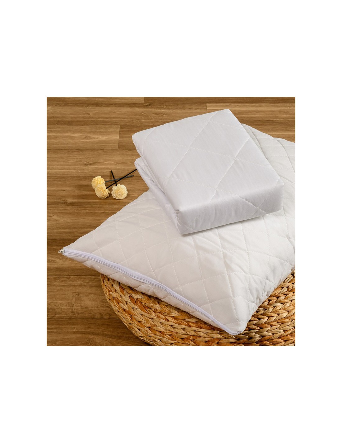 Προστατευτικές μαξιλαροθήκες με καπιτονέ εξωτερική επιφάνεια από ύφασμα 35% βαμβακερό - 65% Polyester και αδιάβροχη μεμβράνη πολυουρεθάνης PU εσωτερικά για άριστη προστασία των μαξιλαριών σας από λεκέδες, υγρασία & μικροοργανισμούς. Κλείνουν με φερμουάρ για σταθερή εφαρμογή.