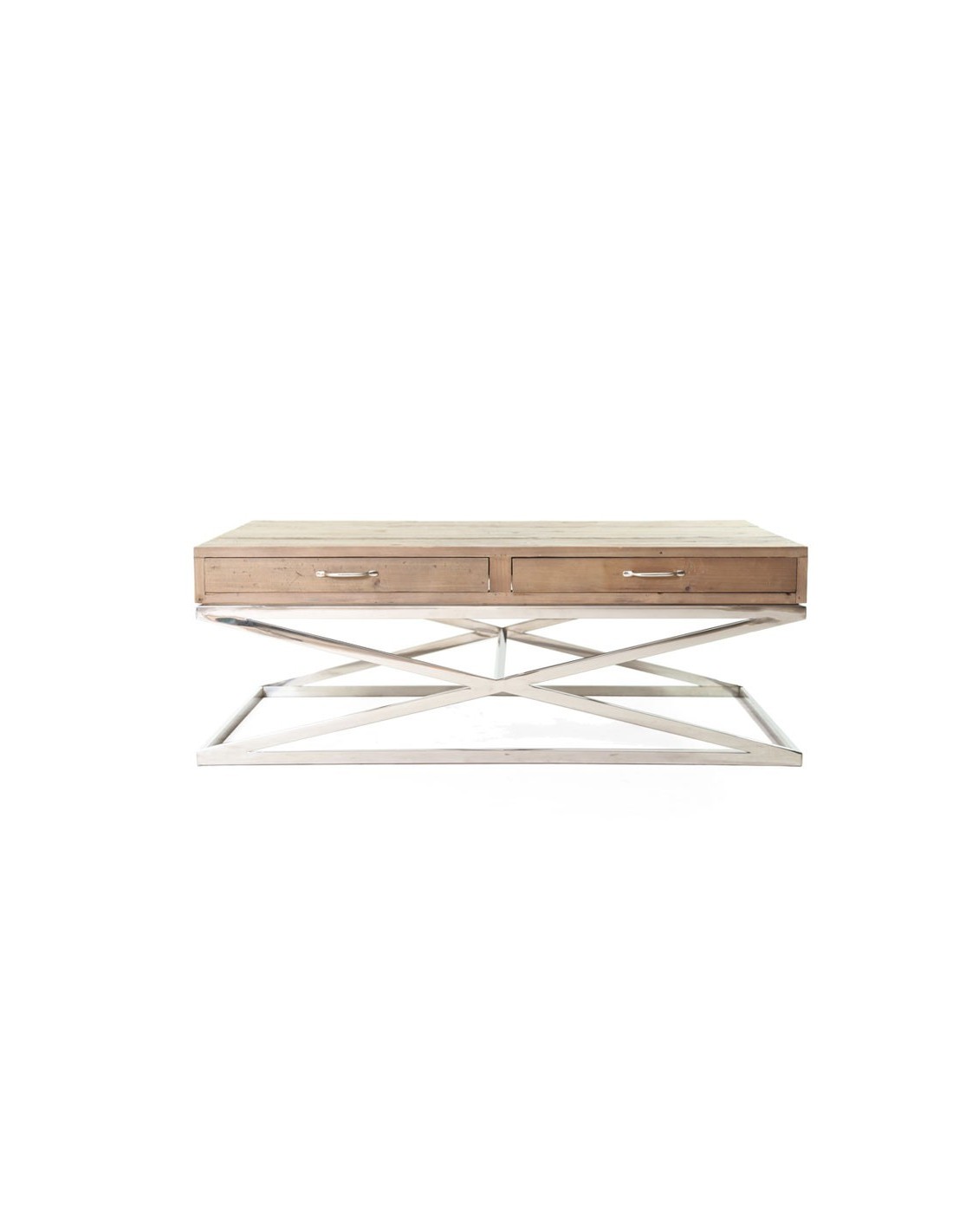 Τραπέζι Καθιστικού Axel (140x80x60cm) από πεπαλαιωμένο ξύλο με inox βάση. Προτείνεται μόνο για εσωτερικό χώρο. Συσκευασία 1 δέμα ανά τεμάχιο.