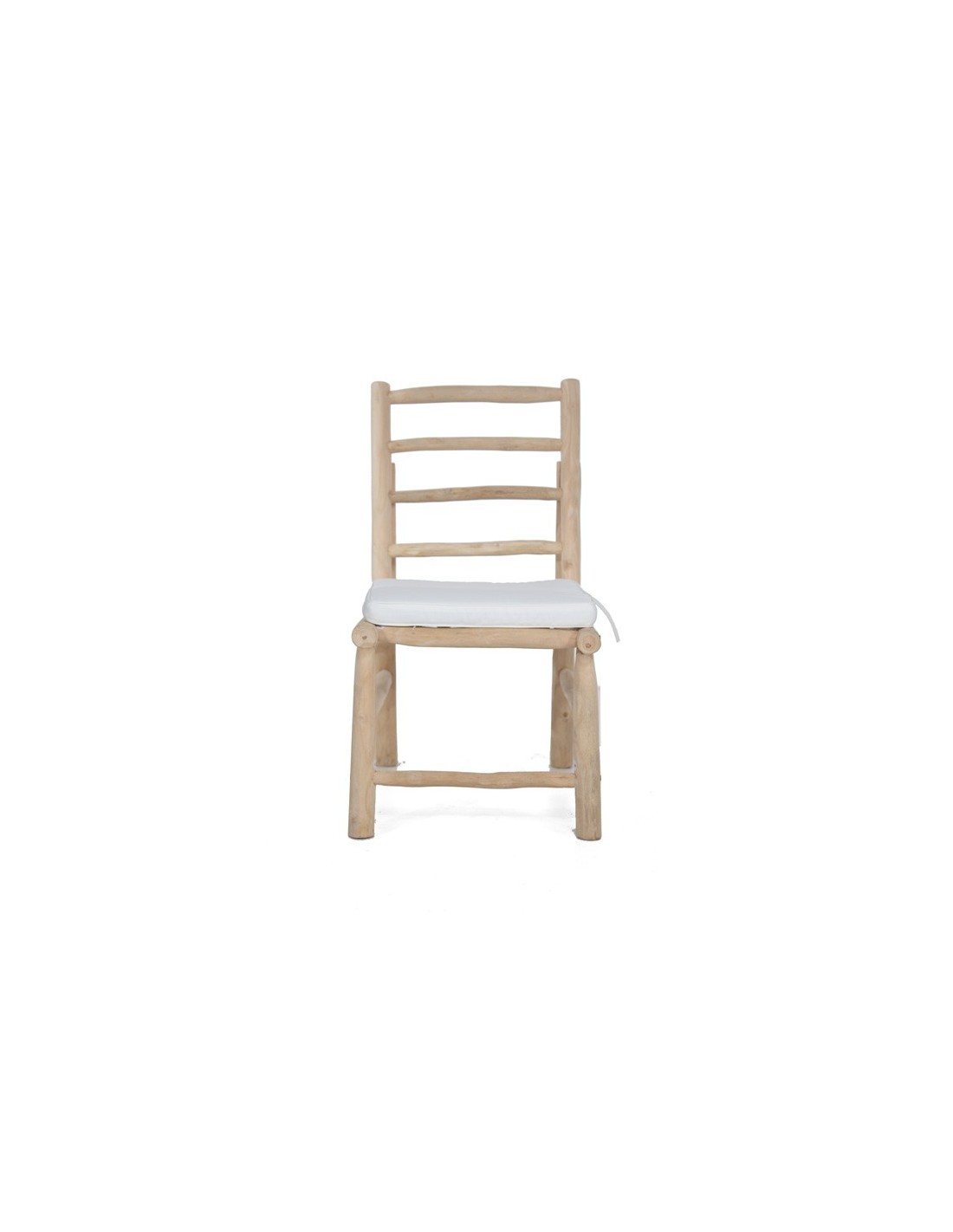 Καρέκλα Τραπεζαρίας Trieste (50x65x94cm) από κλαδιά teak. Το μαξιλάρι πάχους 6 cm περιλαμβάνεται. Ύψος καθίσματος: 52 cm. Κατάλληλο και για εξωτερικό χώρο. Συσκευασία 1 δέμα ανά τεμάχιο.