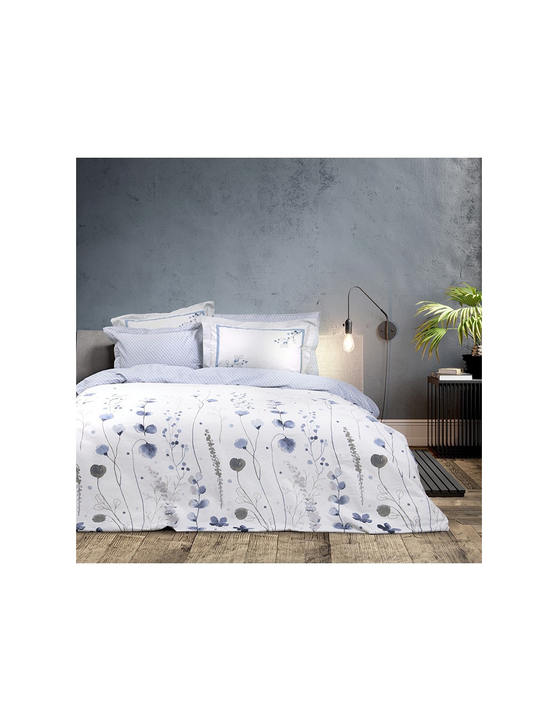 Τα βαμβακερά σεντόνια Ameya με floral μοτίβο εμπνευσμένο από την φύση, αποπνέουν μια ήρεμη ρομαντική διάθεση. Διακριτικά άνθη σε απαλές αποχρώσεις του μπλε και του γκρι συνθέτουν ένα γαλήνιο και ρομαντικό σκηνικό. Την αισθητική του σετ απογειώνουν οι μαξιλαροθήκες, που είναι oxford 4 πλευρών και διαθέτουν πάνελ σχέδιο. Το σετ Ameya με τις απαλές αποχρώσεις του και τα κομψά του μοτίβα, διατηρεί την ηρεμία στο υπνοδωμάτιο ώστε να εξασφαλίζεται ένας χαλαρός και γαλήνιος ύπνος. Η επαφή με τη φύση που δημιουργεί αυτή την οικεία ηρεμία στον χώρο δίνει ξανά το παρόν και το υπνοδωμάτιο μεταμορφώνεται σε έναν καλαίσθητο χώρο, ιδανικό για χαλάρωση.