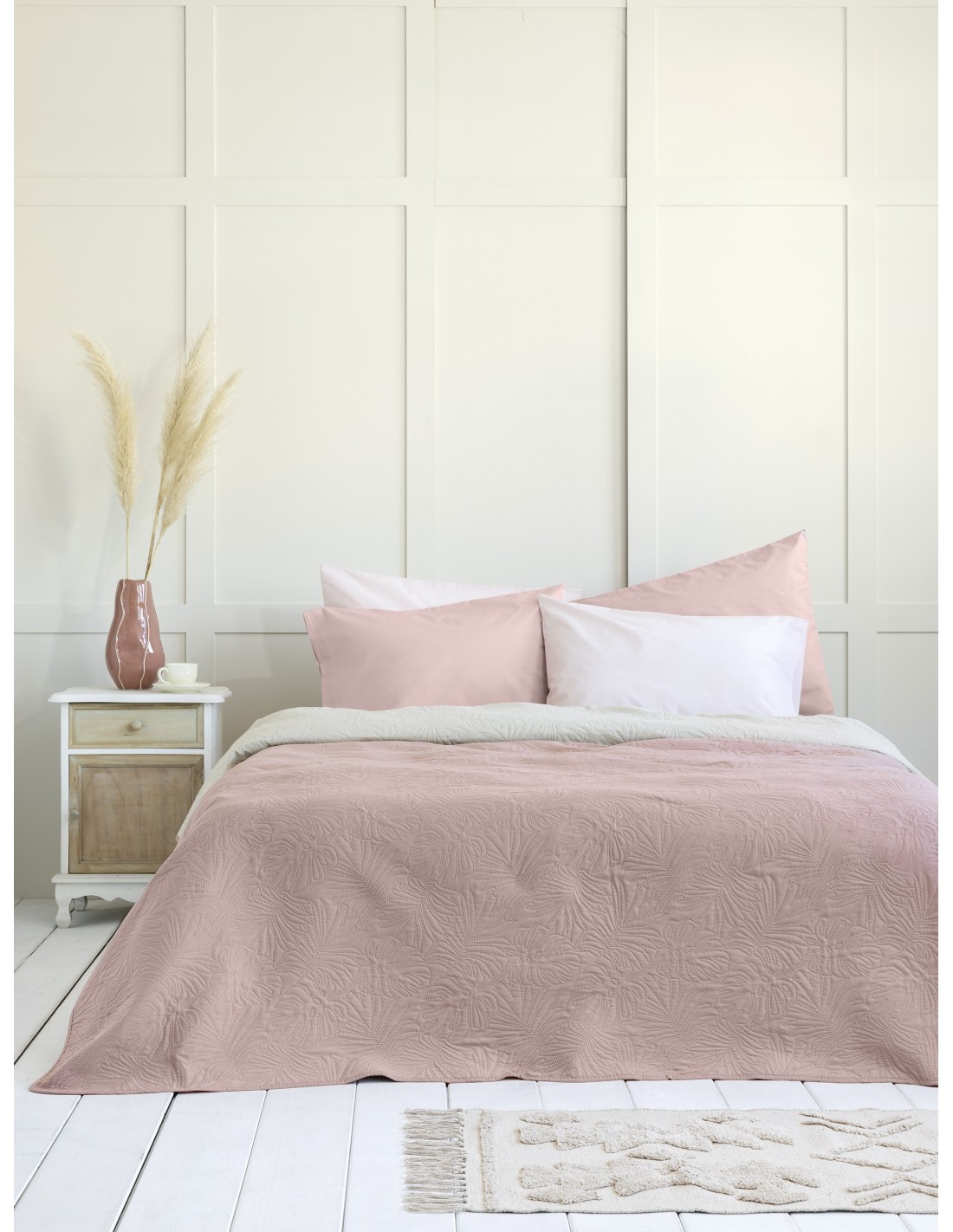 Το κουβερλί Natara L.beige/ R.Pink είναι διπλής όψης και συνδιάζει δύο ουδέτερα και διαχρονικά χρώματα. Η απόχρωση του μπεζ από την μία πλευρά αναδεικνύει την απλή, χαλαρή διακόσμηση, ενώ το ζεστό ροζ χρώμα από την άλλη πλευρά μπορεί να συμμετέχει σε πιο ρομαντική άποψη του χώρου. Και οι δύο πλευρές του μπορούν να συνδυαστούν εύκολα με τα χρώματα που θα επιλέξετε εσείς. Είναι μονόχρωμο και έχει γεωμετρικό, ανάγλυφο καπιτονάρισμα που τονίζει την ωραία υφή του και ταιριάζει πολύ εύκολα με κάθε στιλ διακόσμησης.