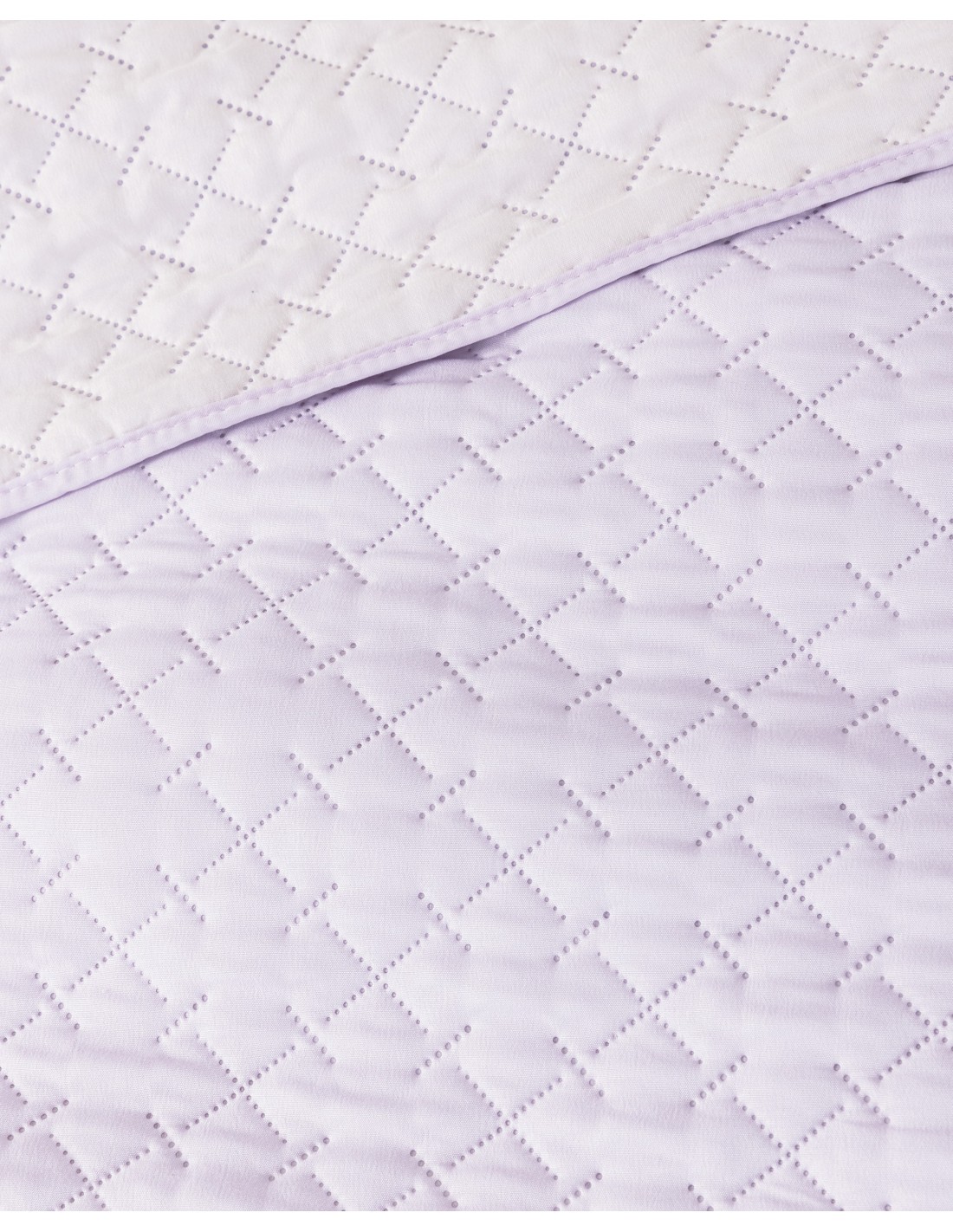 Κουβερλί καπιτονέ 2 όψεων σε λιλά / ροζ χρώμα με μοντέρνο σχέδιο. Κατασκευασμένο από 100% washed microfiber 80 γρ./μ² με γέμιση polyester 120 γρ./μ², που το καθιστά απαλά, ζεστό και άνετο στη χρήση. Ιδανικό σκέπασμα για ανοιξιάτικους και καλοκαιρινούς μήνες.