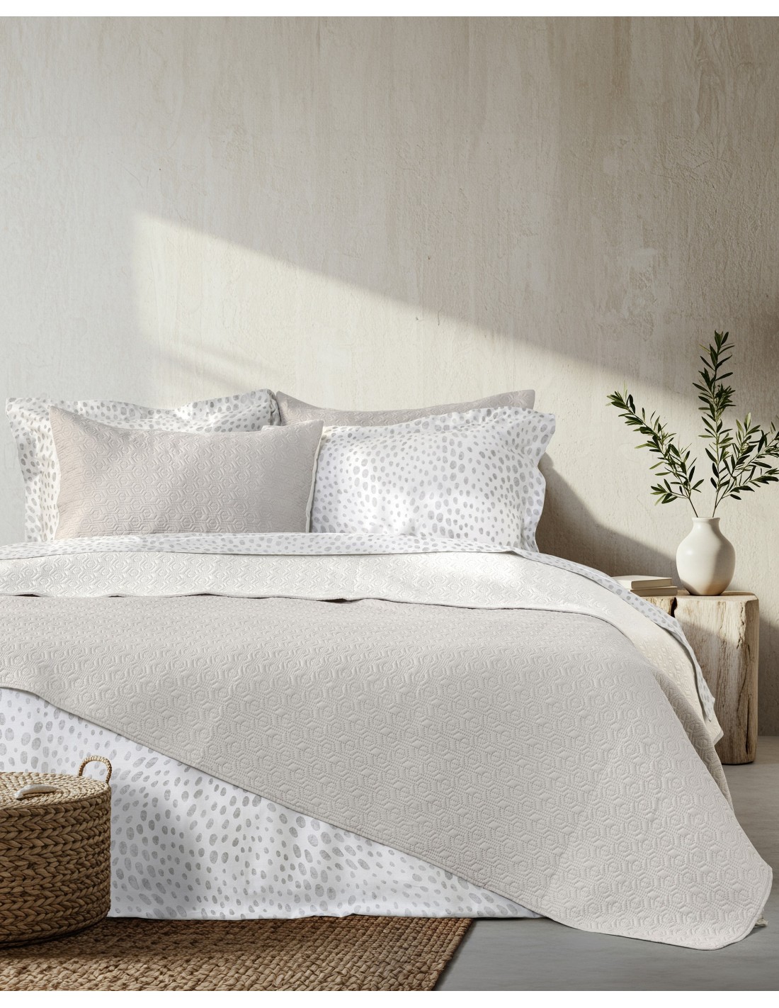Κουβερλί καπιτονέ 2 όψεων σε μπεζ / εκρού χρώμα με μοντέρνο σχέδιο. Κατασκευασμένο από 100% washed microfiber 80 γρ./μ² με γέμιση polyester 120 γρ./μ², που το καθιστά απαλά, ζεστό και άνετο στη χρήση. Ιδανικό σκέπασμα για ανοιξιάτικους και καλοκαιρινούς μήνες.