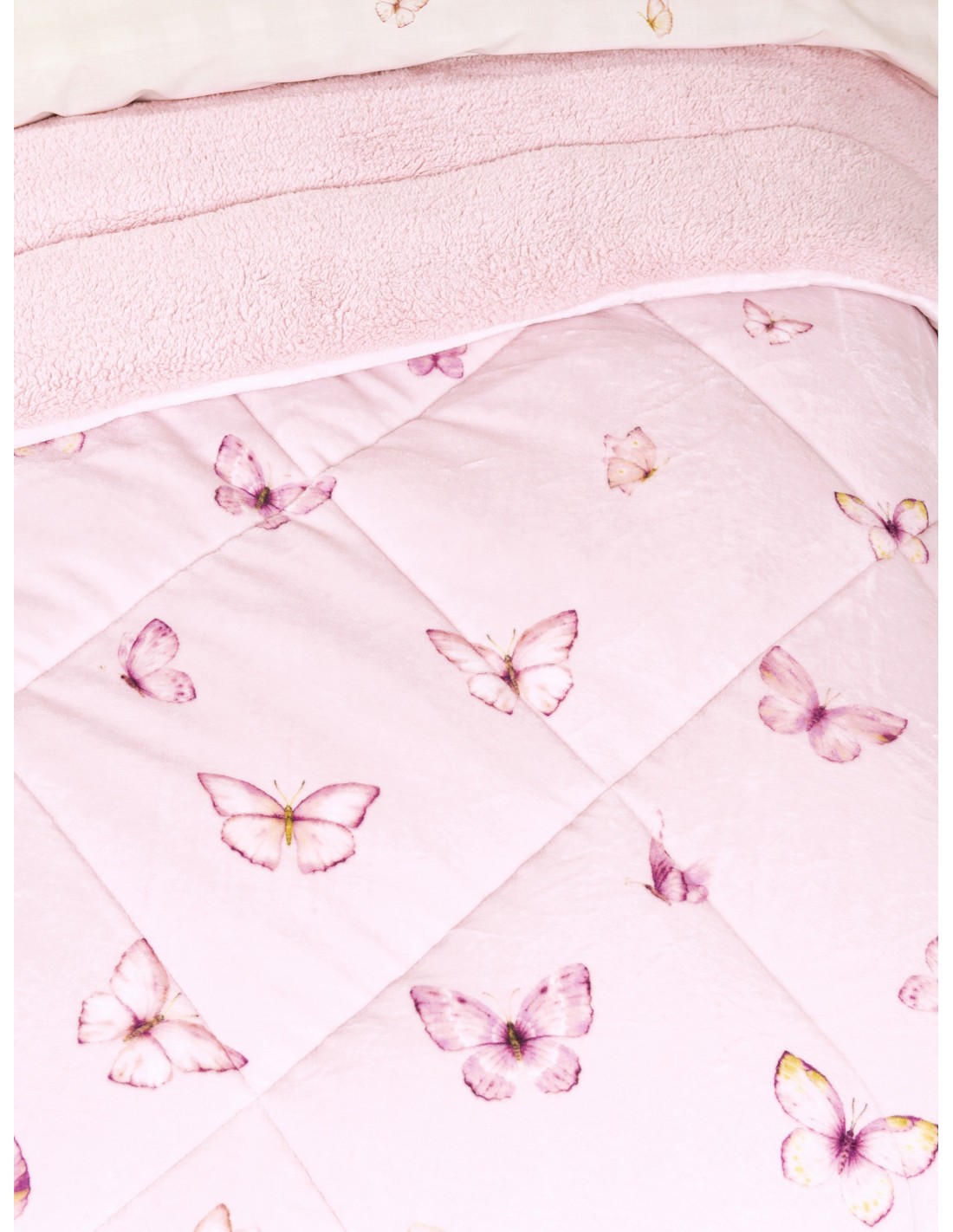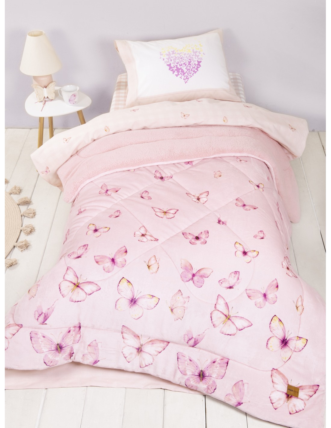Το παιδικό κουβερτοπάπλωμα Bettina, δίνει μια μαγική ατμόσφαιρα στο παιδικό δωμάτιο. Το σχέδιό του είναι εμπνευσμένο από την αέρινη ομορφιά της φύσης. Έχει διάσπαρτες πεταλούδες με εφέ ακουαρέλας, που φαίνονται σαν να κινούνται ανοδικά. Σε γλυκές αποχρώσεις του ροζ και του λιλά, αυτό το κουβερτοπάπλωμα είναι ιδανικό για κάθε μικρή πριγκίπισσα που αγαπά τη φαντασία και τη ζεστασιά. Φτιαγμένο από εξαιρετικά απαλά υλικά, έχει υφή του θυμίζει μια γλυκιά αγκαλιά. Μετατρέψτε το παιδικό υπνοδωμάτιο σε έναν ήρεμο και γλυκό παράδεισο με πεταλούδες. Το κουβερτοπάπλωμα Bettina, είναι η ιδανική επιλογή για ζεστασιά, στυλ και άνεση. Συνδυάστε το με το ασσορτί σετ σεντονιών Bettina, για να συπληρώστε την μαγεία.....