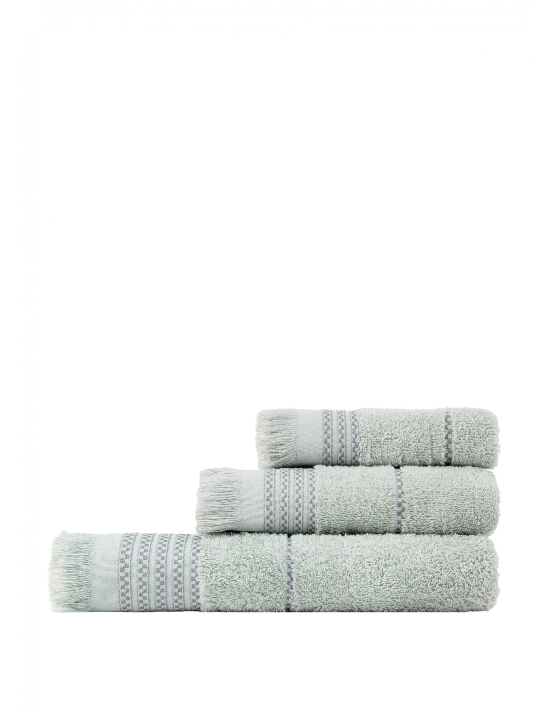Το βαμβακερό σετ πετσέτες Plush Dusty Mint έχει πλούσια ύφανση με γραμμική μπορντούρα και κροσσάκι στο τελείωμα. Το χρώμα της μέντας στην πετσέτα είναι μια δημοφιλής και κομψή επιλογή που θα "ντύσει" το μπάνιο σας με φρεσκάδα και αναζωογόνηση. Η μπορντούρα που διακοσμεί τις πετσέτες είναι ένα ξεχωριστό στοιχείο που προσδίδει μια αίσθηση πολυτέλειας και φινέτσας, ενώ το κρόσσι προσθέτει μια παιχνιδιάρικη πινελιά. Προσφέρεται σε σετ τριών τεμαχίων που περιλαμβάνει μία πετσέτα χεριών μια προσώπου και μια μπάνιου. Δώστε στο μπάνιο σας την ανανέωση και το χρώμα που χρειάζεται ή δωρίστε σε φίλους αυτό το υπέροχο σετ.