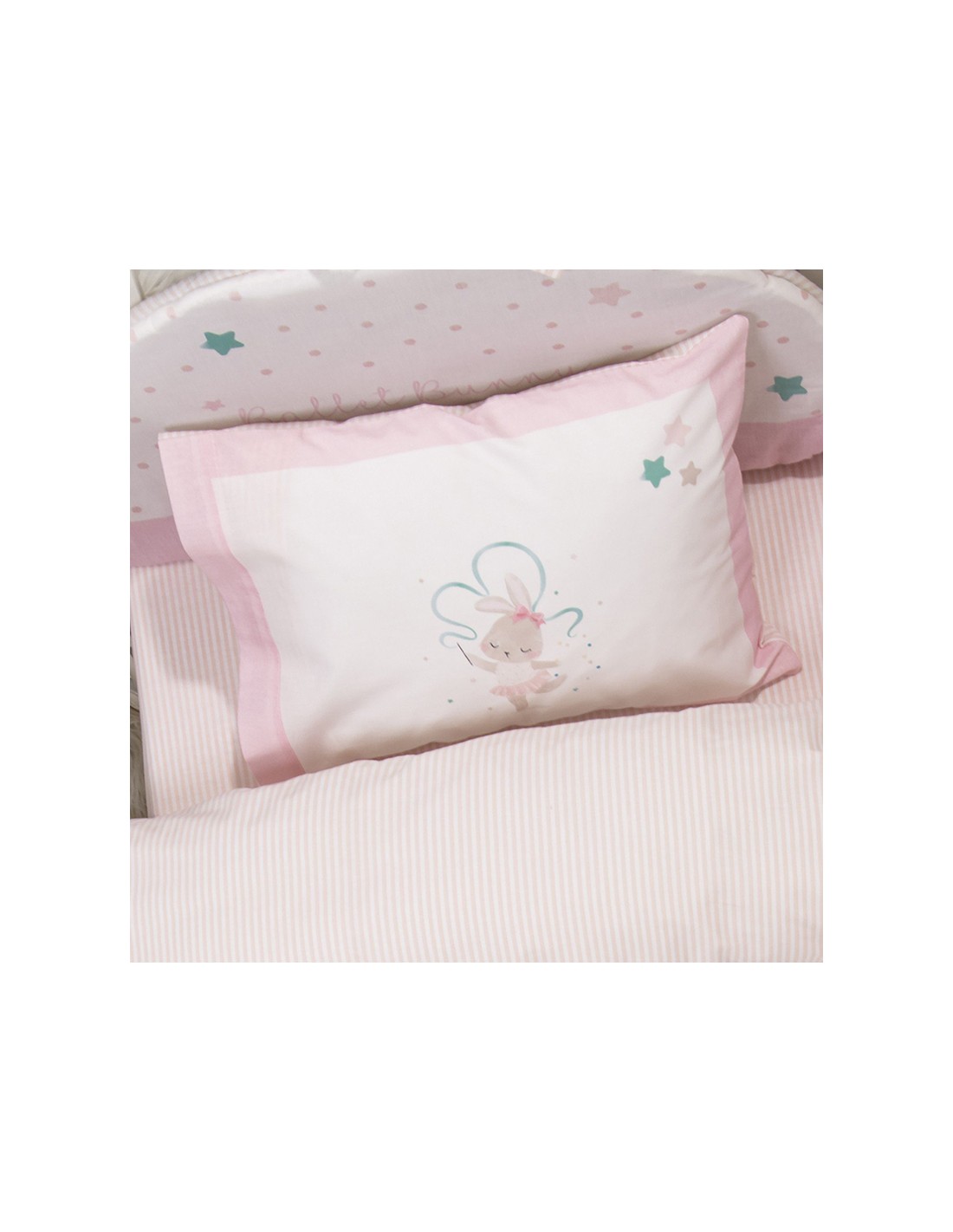 Οι βαμβακερές μαξιλαροθήκες Ballet Bunny, έχουν ένα όμορφο πάνελ σχέδιο με μια γλυκιά λαγουδίνα μπαλαρίνα να χορεύει καμαρωτή και χαρούμενη. Κάθε μωράκι θα αγαπήσει την γλυκύτατη μπαλαρίνα και θα θελήσει να την έχει συντροφια την ώρα του ύπνου του. Συνδυάστε τις μαξιλαροθήκες Ballet Bynny με την ασσορτί βρεφική κουβερτούλα για να δημιουργήσετε ένα πανέμορφο σετ!