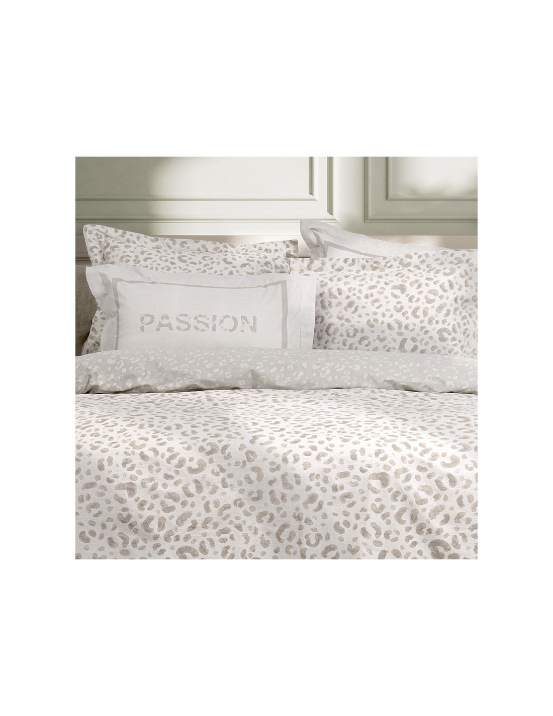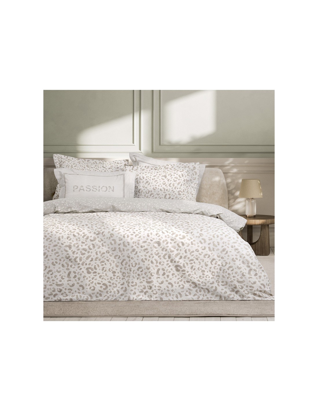 Τα βαμβακερά σεντόνια Passion συνδυάζουν μια τολμηρή αισθητική με την απόλυτη άνεση. Το μοτίβο τους είναι ένα μοντέρνο animal print σε ουδέτερες αποχρώσεις του μπεζ. Οι μαξιλαροθήκες του σετ που είναι oxford 4 πλευρών, διαθέτουν λιτό πάνελ μοτίβο με την λέξη Passion στο κέντρο, που δημιουργεί μια ατμόσφαιρα πολυτέλειας και πάθους στον προσωπικό σας χώρο. Αναδείξτε το υπνοδωμάτιό σας με το σετ σεντονιών Passion, που είναι κατασκευασμένο από υλικά υψηλής ποιότητας και εξασφαλίζει έναν ξεκούραστο ύπνο.