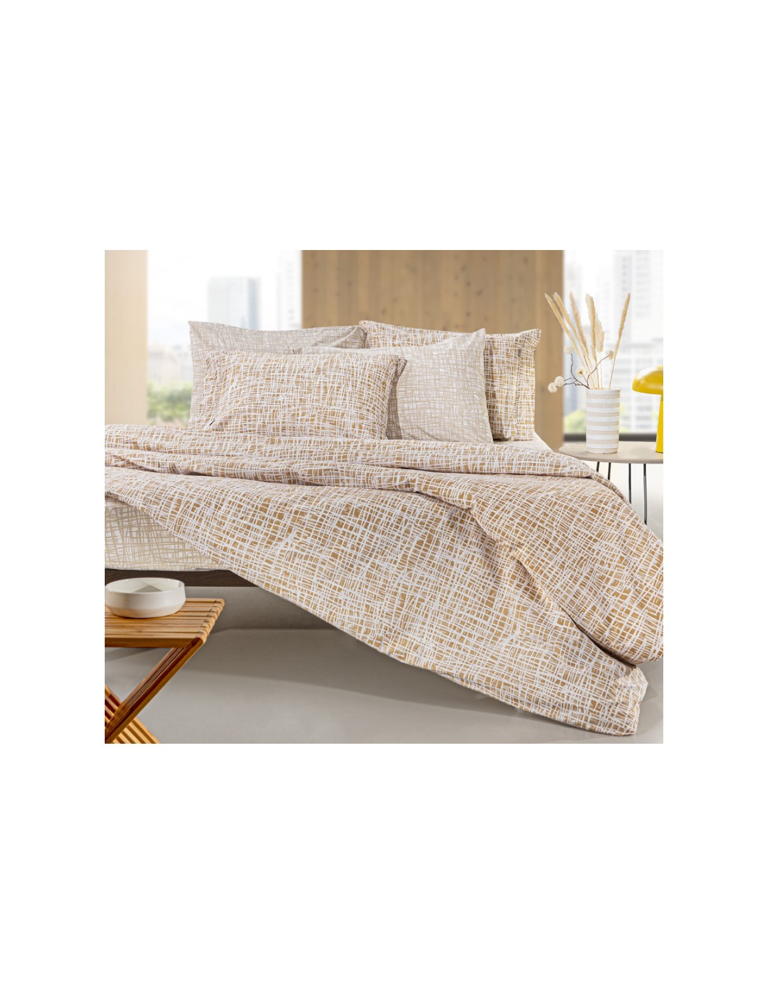Σετ 4τμχ σεντόνια με μοντέρνο σχέδιο τυπωμένο από την εταιρεία Guy Laroche Paris. Διατίθεται με ή χωρίς λάστιχο.Το ύφασμά τους είναι 100% βαμβάκι περκάλι 160 κλωστών, που τα καθιστά ανθεκτικά, απαλά και μαλακά. To σετ περιλαμβάνει ένα πανωσέντονο, ένα κατωσέντονο και ένα ζεύγος μαξιλαροθήκες διάστασης 50x70εκ.