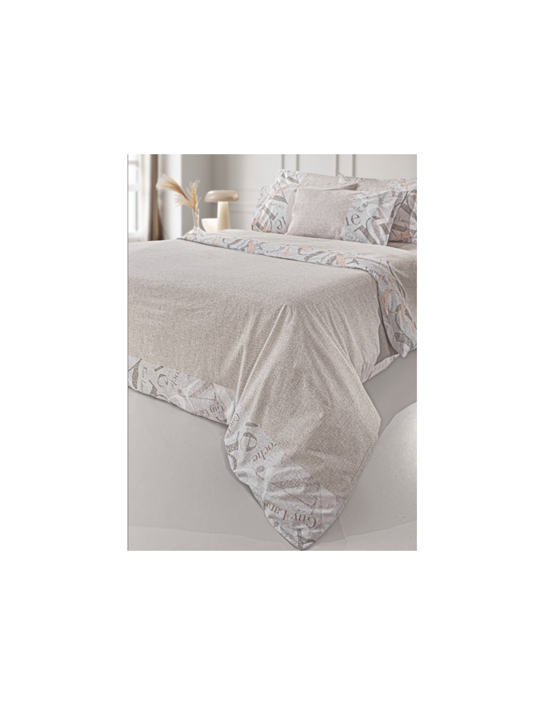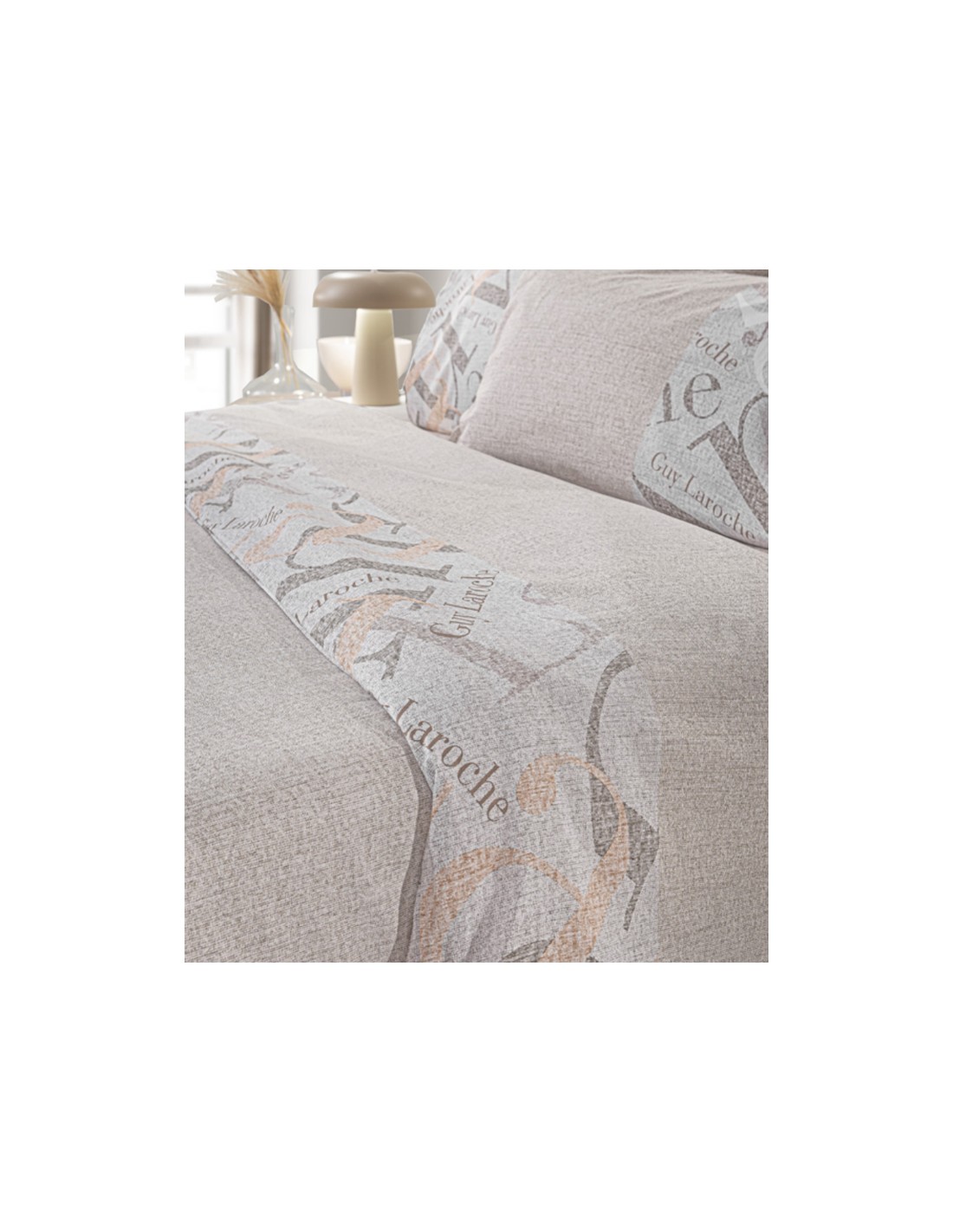 Σετ 4τμχ σεντόνια με μοντέρνο σχέδιο τυπωμένο από την εταιρεία Guy Laroche Paris. Το ύφασμά τους είναι 100% βαμβάκι περκάλι 160 κλωστών, που τα καθιστά ανθεκτικά, απαλά και μαλακά. To σετ περιλαμβάνει ένα πανωσέντονο, ένα κατωσέντονο και ένα ζεύγος μαξιλαροθήκες διάστασης 50x70εκ