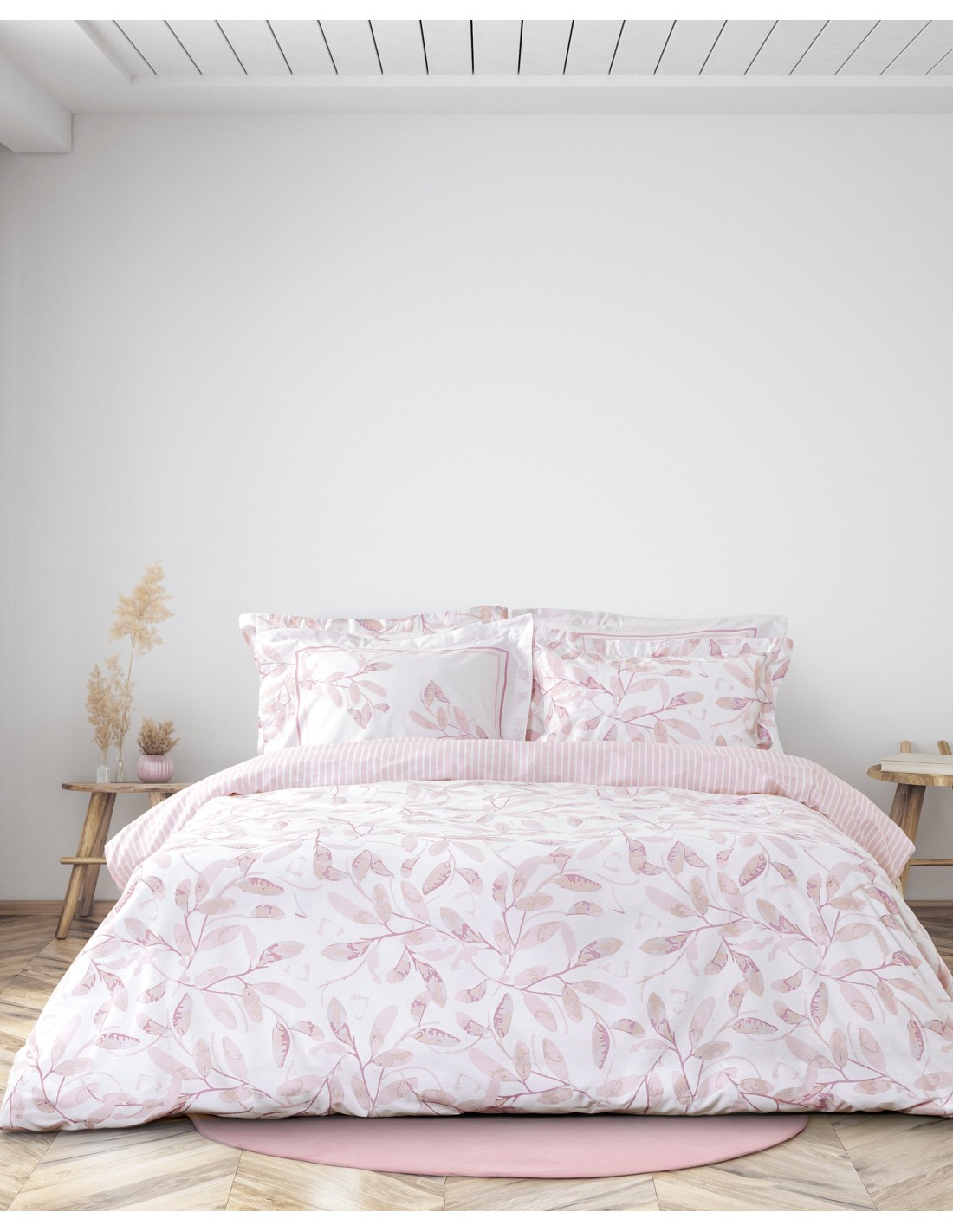 Σετ σεντόνια σε ροζ χρώμα με φλοράλ σχέδιο. Είναι κατασκευασμένα από 100% βαμβάκι 144 κλωστών, που τα καθιστά απαλά, ανθεκτικά και άνετα στη χρήση. Οι μαξιλαροθήκες είναι Oxford 4 πλευρών δύο όψεων – η μία με το σχέδιο του πανωσέντονου και η άλλη σε στις ίδιες αποχρώσεις με πάνελ διακριτικό μοτίβο. Ιδανικό για να ανανεώσει το υπνοδωμάτιο με στυλ και άνεση.