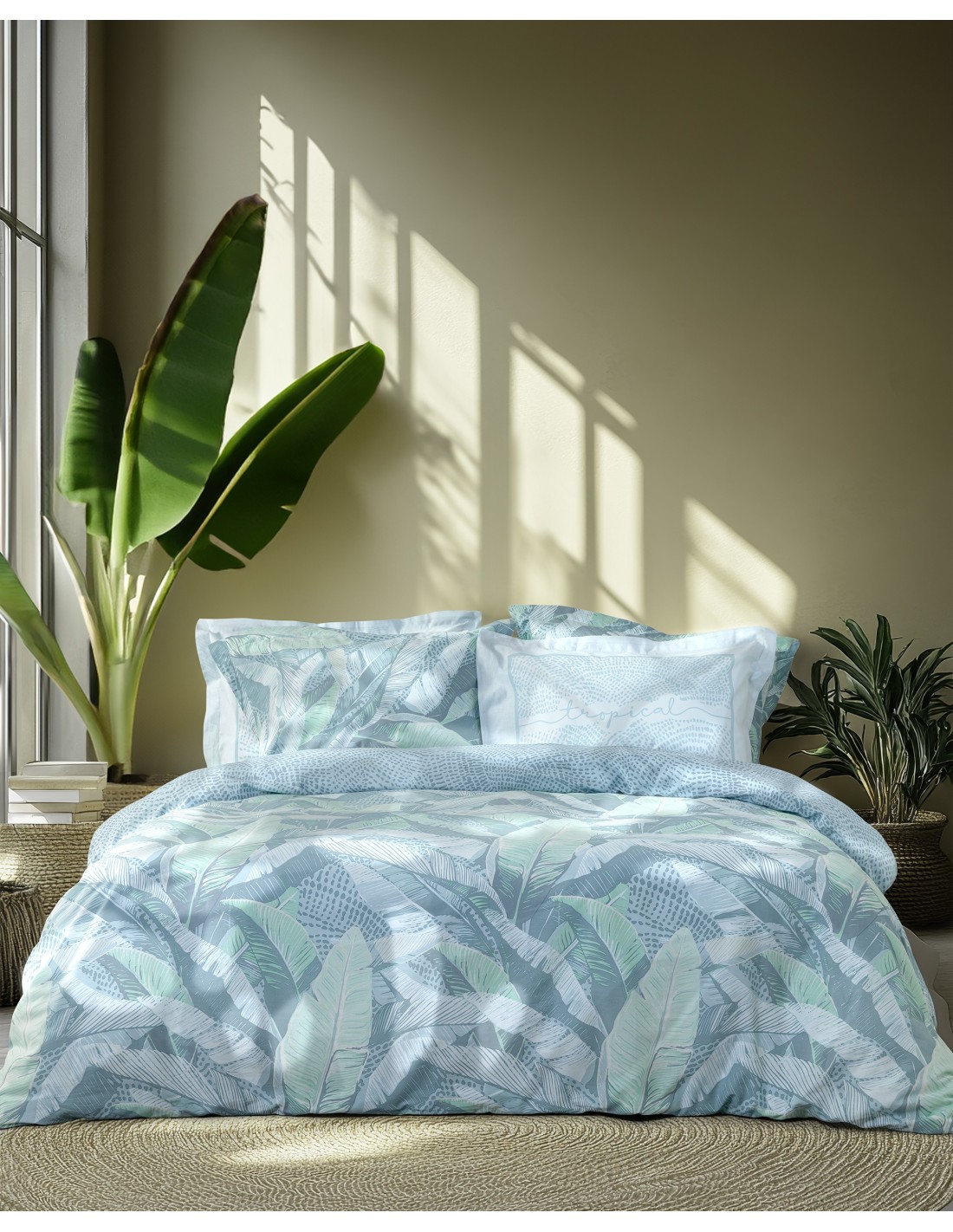Σετ σεντόνια σε τιρκουάζ - πράσινο χρώμα με μοντέρνο σχέδιο. Είναι κατασκευασμένα από 100% βαμβάκι 144 κλωστών, που τα καθιστά απαλά, ανθεκτικά και άνετα στη χρήση. Οι μαξιλαροθήκες είναι Oxford 4 πλευρών δύο όψεων – η μία με το σχέδιο του πανωσέντονου και η άλλη σε στις ίδιες αποχρώσεις με πάνελ διακριτικό μοτίβο. Ιδανικό για να ανανεώσει το υπνοδωμάτιο με στυλ και άνεση.