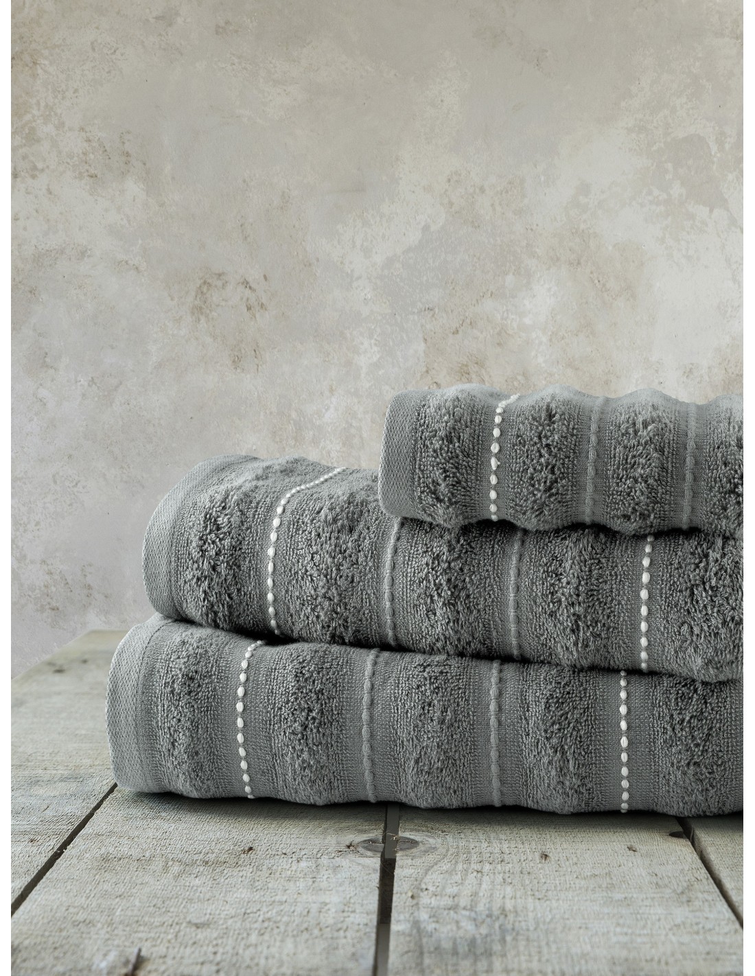 Το βαμβακερό σετ πετσέτες Aura Dark Gray έχει σκούρο γκρι χρώμα που δίνει έναν έντονο χαρακτήρα στην πετσέτα, χαρίζοντας στο μπάνιο σας μια αίσθηση δυναμισμού. Το υφαντό jacquard σχέδιό της, με ανάγλυφες ρίγες που διατρέχουν όλη την πετσέτα, δημιουργεί μια κομψή και διαχρονική υφή, ενώ τα τμήματα με πιο πλούσιο και παχύ πέλος προσθέτουν βάθος και ιδιαίτερη απαλότητα στην αφή. Φρεσκάδα, δυναμισμός και διακριτική πολυτέλεια συναντιούνται στην πετσέτα Aura Dark Gray. Κάθε λεπτομέρειά της είναι σχεδιασμένη ώστε να προσφέρει όχι μόνο πρακτικότητα, αλλά και αισθητική αρμονία.