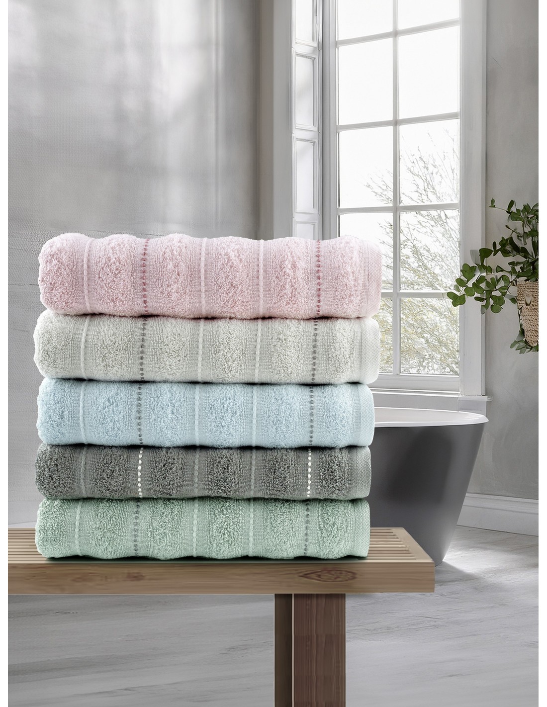 Σετ Πετσέτες 3 τεμαχίων με σύνθεση από 100% βαμβάκι βάρους 450 gsm. Έχει πλούσια, αφράτη υφή και εξαιρετικά απαλή αίσθηση. Χάρη στη βαμβακερή της σύνθεση αναπνέει φυσικά, είναι πολύ απορροφητική, υποαλλεργική και φιλική προς το δέρμα. Προσφέρει άνετο στέγνωμα μετά το ντους ή το μπάνιο. Είναι ιδανική για καθημερινή χρήση και έχει μεγάλη αντοχή στον χρόνο καθώς διατηρεί το σχήμα και το χρώμα της ακόμα και μετά από πολλές πλύσεις, χωρίς να απαιτεί ιδιαίτερη φροντίδα.