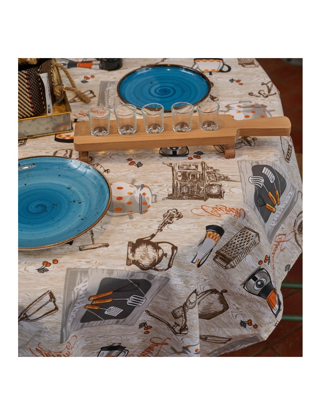 Νιώστε Masterchef στην κουζίνα! Οι γευστικές δημιουργίες σας αξίζουν πάντα τον καλύτερο καμβά για να αναδειχθούν! Το Τραπεζομάντηλο Κουζίνας Cook αποτυπώνει τον κόσμο των μυστικών που σας βοηθούν να μεγαλουργήσετε. Το σχέδιο είναι πλούσιο και δυναμικό, το ύφασμα ανάλαφρο κι απαλό στην αφή ενώ τα χρώματα παραμένουν απόλυτα σταθερά στα συνεχή πλυσίματα.