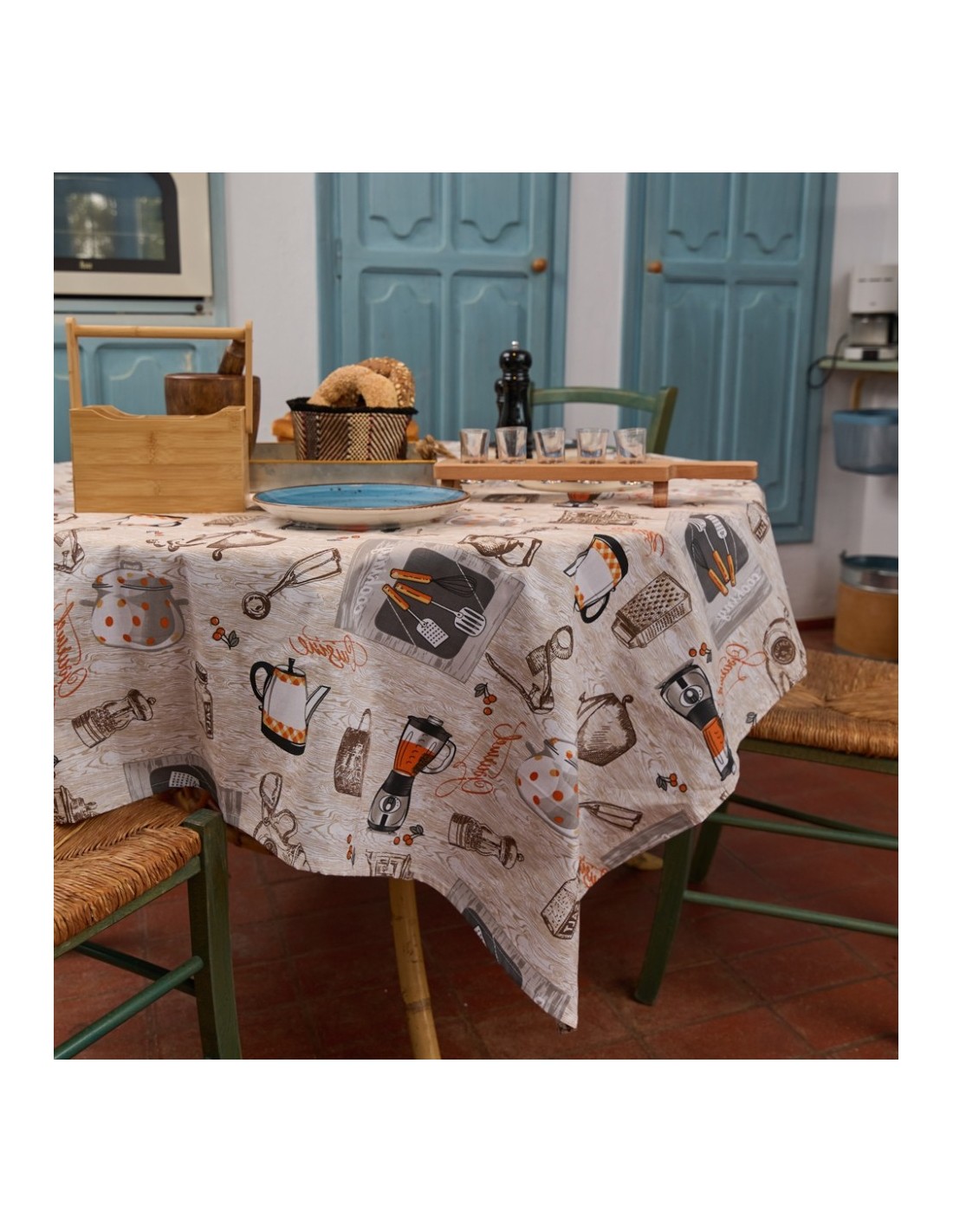 Νιώστε Masterchef στην κουζίνα! Οι γευστικές δημιουργίες σας αξίζουν πάντα τον καλύτερο καμβά για να αναδειχθούν! Το Τραπεζομάντηλο Κουζίνας Cook αποτυπώνει τον κόσμο των μυστικών που σας βοηθούν να μεγαλουργήσετε. Το σχέδιο είναι πλούσιο και δυναμικό, το ύφασμα ανάλαφρο κι απαλό στην αφή ενώ τα χρώματα παραμένουν απόλυτα σταθερά στα συνεχή πλυσίματα.