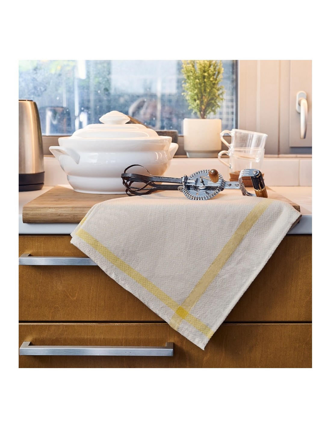 Βαμβακερή Πετσέτα - Ποτηρόπανο, Ζακάρ-Πικέ Dry. Απαλή στην αφή, έξτρα απορροφητική και πρακτική για καθημερινή χρήση. Το καθαρό λιτό σχέδιο με τη χρωματιστή ρίγα θυμίζει πρωινά στην εξοχή.