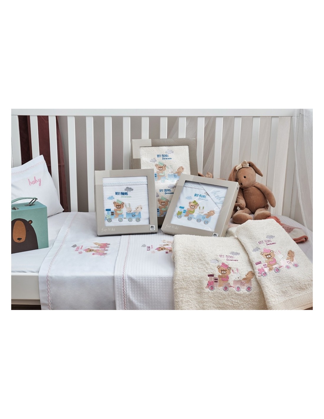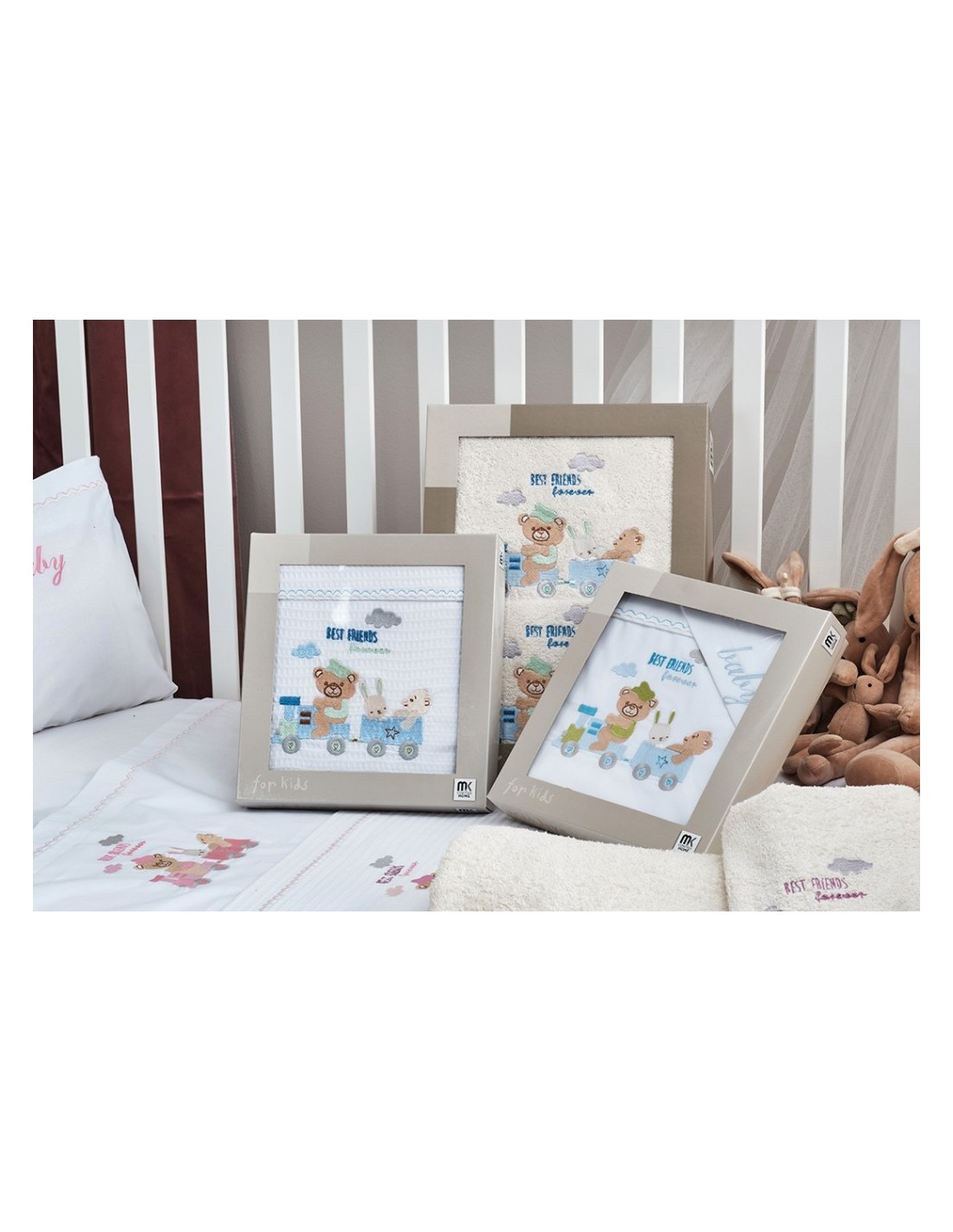 Βαμβακερή Μονόχρωμη Πετσέτα, αφράτη, υποαλλεργική και φιλική στο δέρμα του μωρού, απορροφητική, με κέντημα ένα περιπετειώδες μπλε τραινάκι. Συνδυάστε με το αντίστοιχο σετ σεντόνι και χαρίστε στα μικρά σας την καλύτερη φροντίδα.