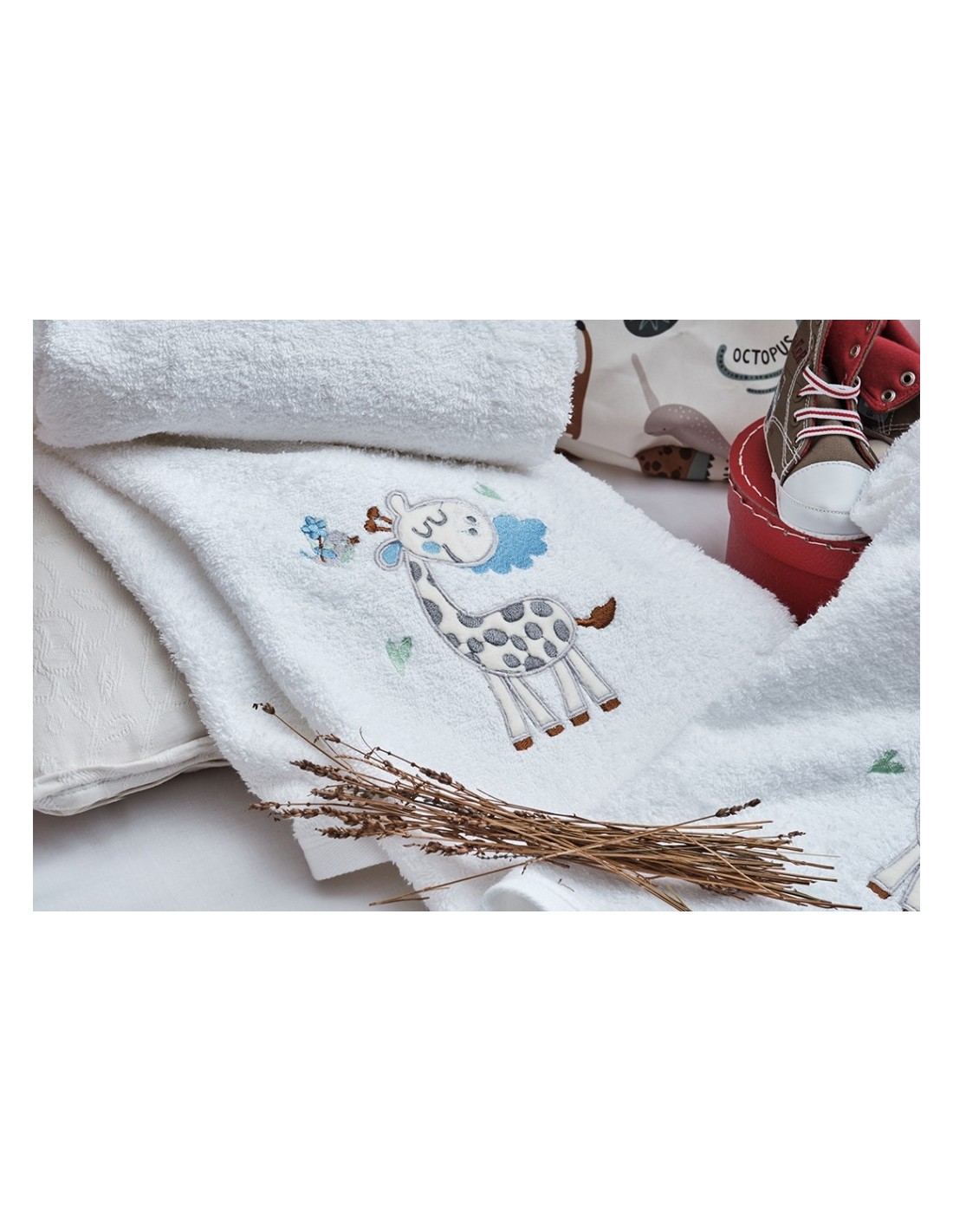Πετσέτες Σετ με κέντημα Giraffe Blue - 50x90,75x150 με κέντημα