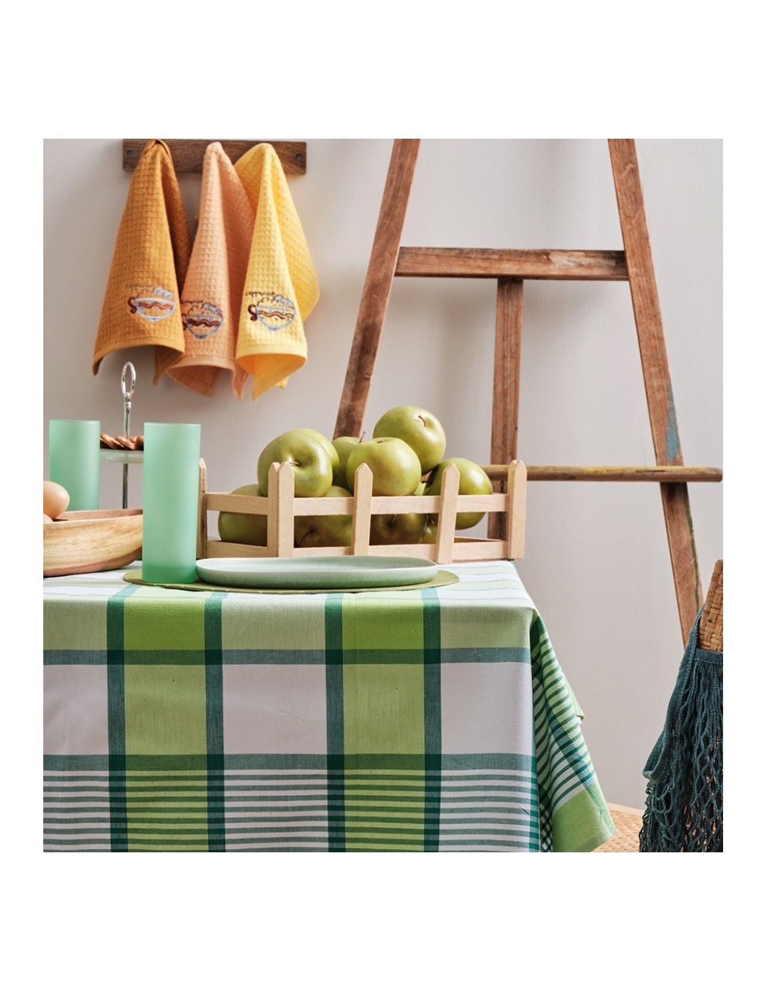 Βαμβακερό Τραπεζομάντηλο Νηματοβαφή με μεγάλα καρό. Απαλό στην αφή με ανεξίτηλα χρώματα. Δώστε στο τραπέζι σας το χρώμα ενός πράσινου μήλου κι ανανεώστε την ατμόσφαιρα της κουζίνας σας.
