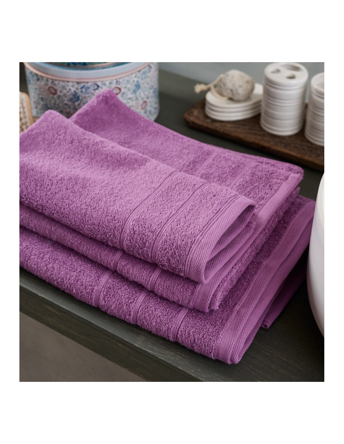 Βαμβακερή Μονόχρωμη Πετσέτα, με ανάγλυφες ρίγες στη μπορντούρα. Αφράτη, απορροφητική, υποαλλεργική από πενιέ νήματα άριστης ποιότητας. Μαλακή και φιλική με το δέρμα σας.  Δημιουργήστε τα δικά σας χρωματικά σετ ή επιλέξτε μεμονωμένα για σώμα, πρόσωπο, χέρια κι αφεθείτε στη φροντίδα τους.