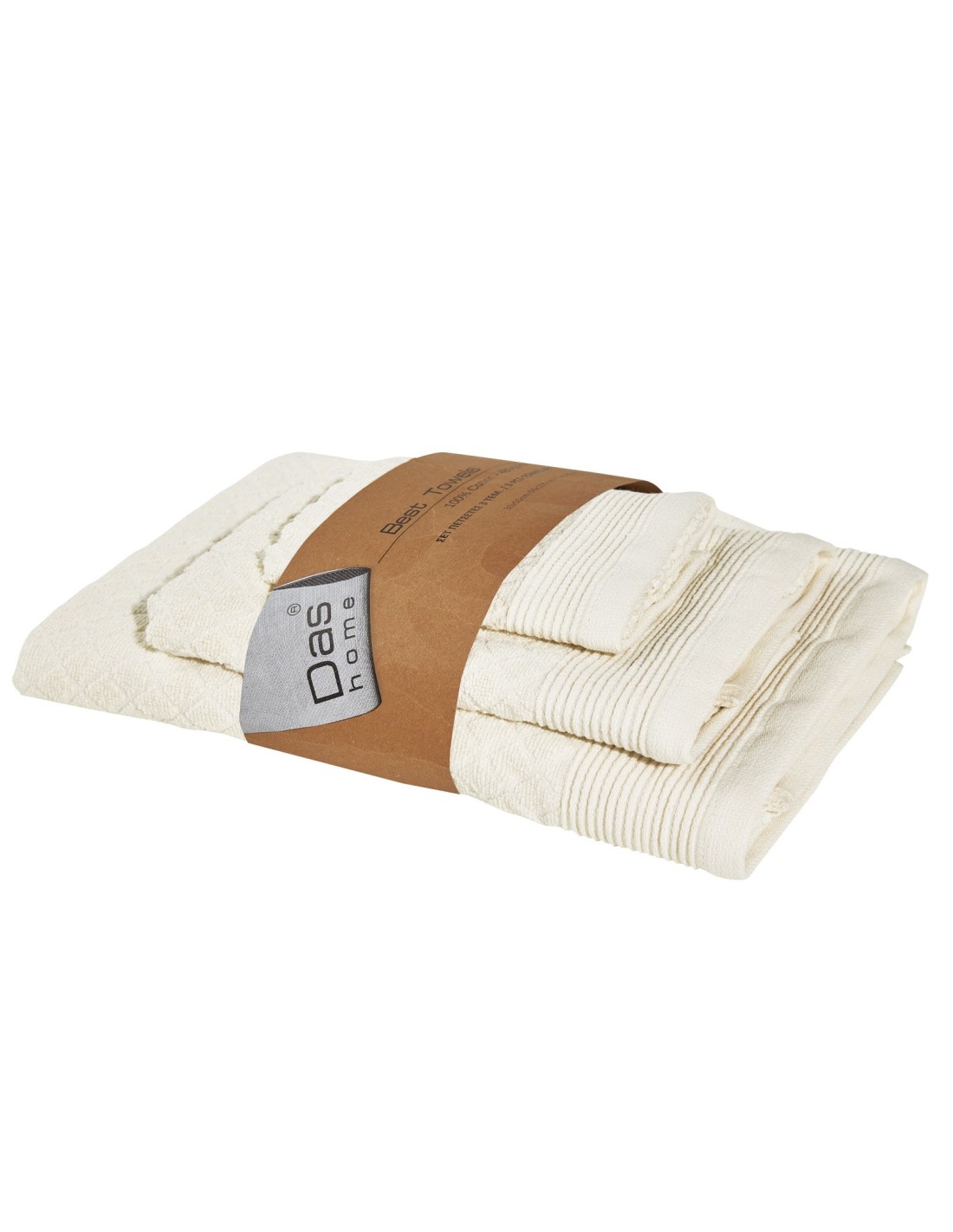 Σετ πετσέτες 3 τεμαχίων της σειράς Best. Είναι από 100% βαμβάκι υψηλής ποιότητας, ιδιαίτερα απαλές, απορροφητικές και ανθεκτικές στην χρήση με βάρος 480gr/m2. Τα χρώματα που χρησιμοποιούνται είναι ανεξίτηλα και υποαλλεργικά. Το σετ αποτελείται από μία πετσέτα μπάνιου 70Χ140εκ, μία πετσέτα προσώπου 50Χ100εκ και μία πετσέτα χεριών 30Χ50εκ. Das home...makes your house a home!