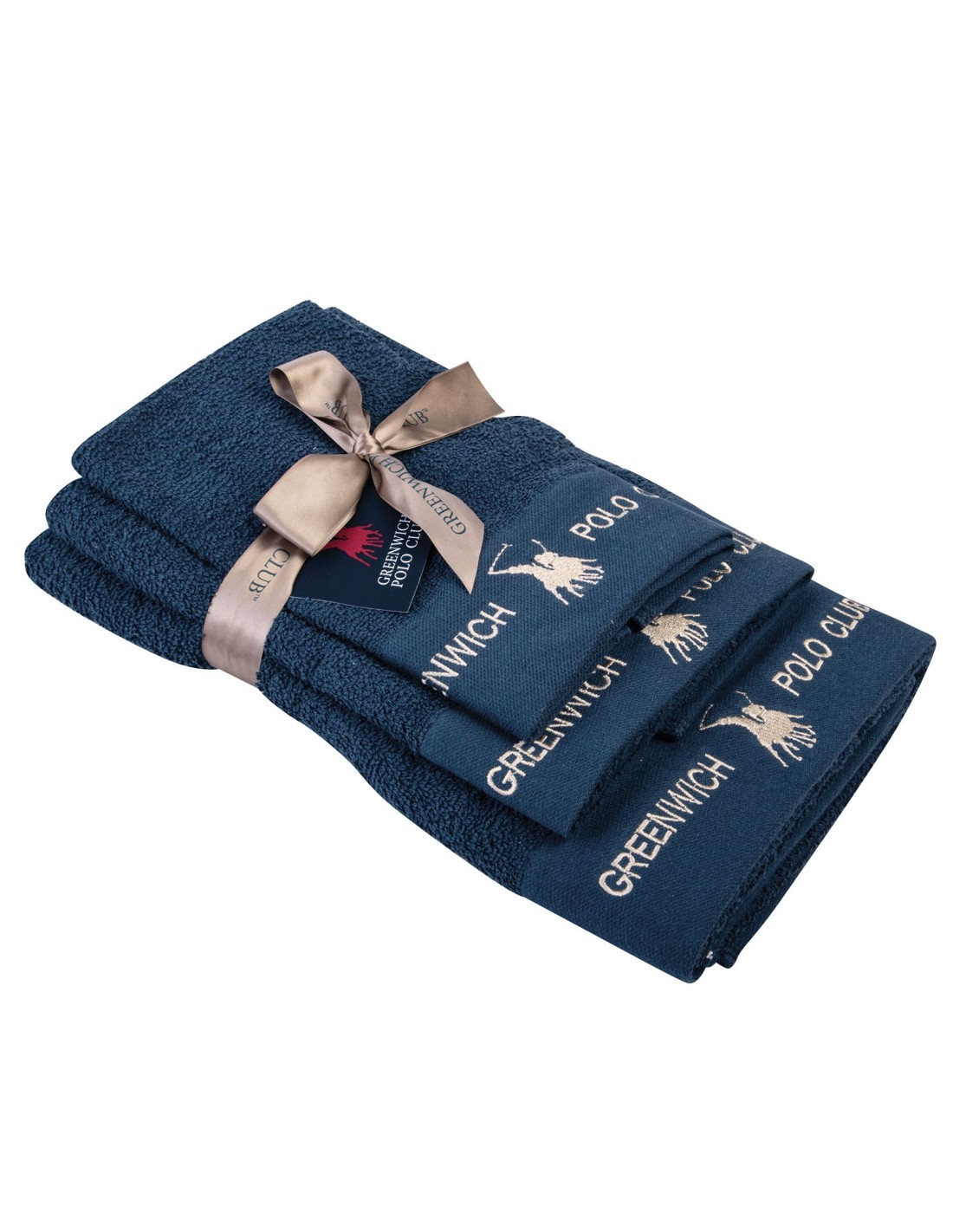 Σετ πετσέτες 3 τεμαχίων με κέντημα Greenwich Polo Club. Είναι απο 100% βαμβάκι υψηλής ποιότητας με βάρος 480gr/m2. Είναι ιδιαίτερα απαλές, απορροφητικές και ανθεκτικές, ενώ τα χρώματα που χρησιμοποιούνται είναι ανεξίτηλα και υποαλλεργικά. Το σετ αποτελείται από 3 πετσέτες σε διαστάσεις 30Χ50εκ., 50Χ90εκ. και 70Χ140εκ. Επιλέξτε Greenwich Polo Club για να απολαύσετε ποιότητα, στυλ και πολυτέλεια.