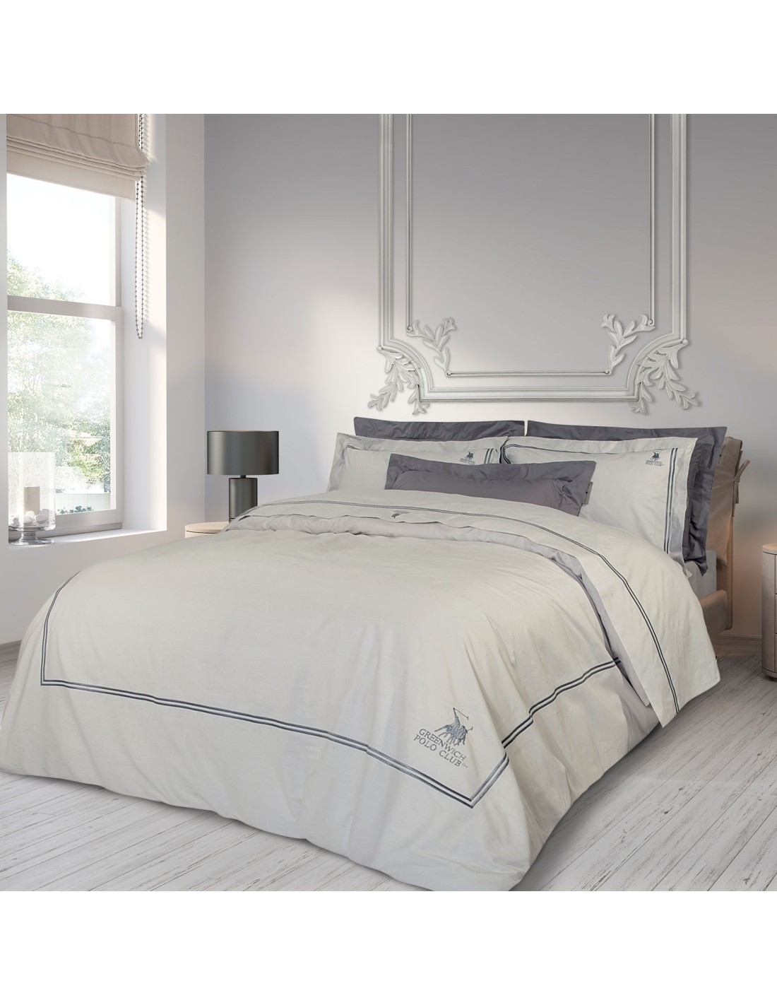 Σετ σεντόνια Greenwich Polo Club με κέντημα της σειράς Classic. Είναι από 100% βαμβάκι περκάλι με πυκνότητα ύφανσης 210TC και με ειδική επεξεργασία για εύκολο σιδέρωμα. Το σετ αποτελείται από 2 σεντόνια διαστάσεων 280Χ270εκ και 2 μαξιλαροθήκες 50Χ70+5εκ με περιμετρική ραφή oxford. Αυτό που χαρακτηρίζει την συλλογή είναι οι απαλές αποχρώσεις, τα διακριτικά σχέδια και το διαχρονικό ύφος. Επιλέξτε Greenwich Polo Club για να απολαύσετε ποιότητα, στυλ και πολυτέλεια.