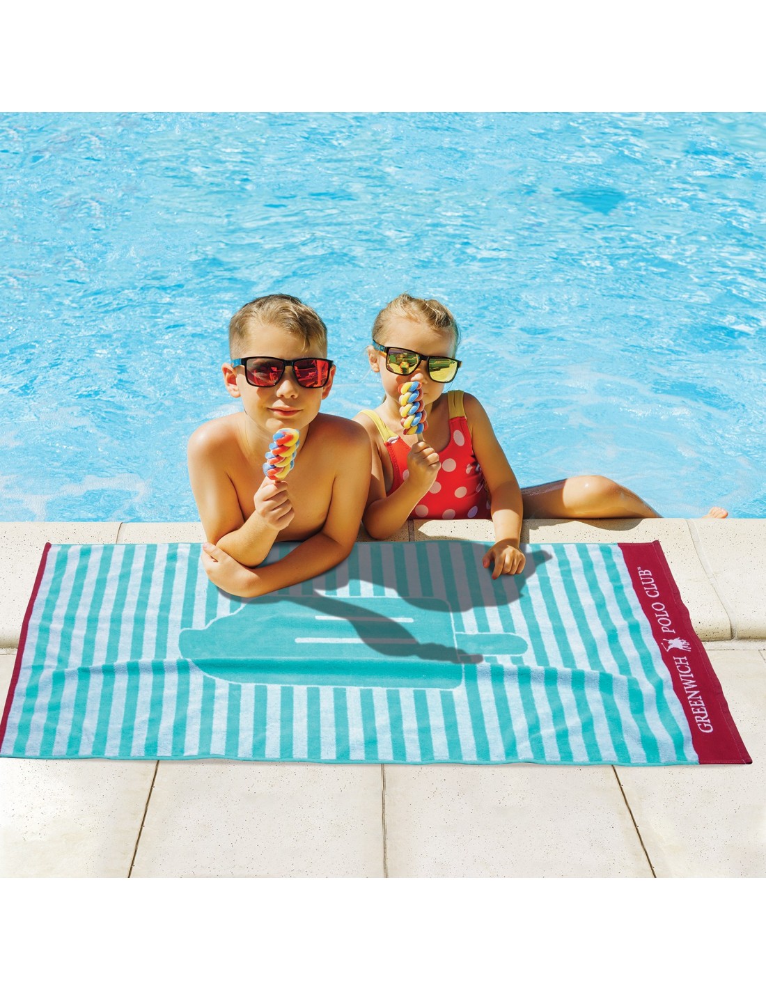 Πετσέτα Θαλάσσης Greenwich Polo Club Junior σε διάσταση 70Χ140εκ. Είναι υποαλλεργική, απαλή, απορροφητική και ανθεκτική στη χρήση. Η σύνθεσή της είναι από 100% βαμβάκι σε ύφανση jacquard και βάρος 450gr/m2. Επιλέξτε Πετσέτες Θαλάσσης Greenwich Polo Club σε μοντέρνα σχέδια και χρώματα για τις εμφανίσεις σας στην παραλία.