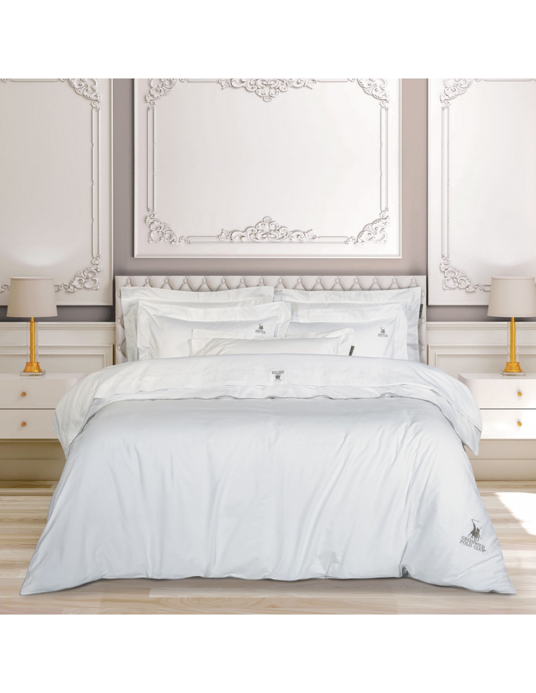 Σετ σεντόνια Greenwich Polo Club της σειράς Classic. Είναι από 100% βαμβάκι σατέν με πυκνότητα ύφανσης 330TC και με ειδική επεξεργασία για εύκολο σιδέρωμα. Το σετ αποτελείται από δύο σεντόνια διαστάσεων 250Χ270εκ και δύο μαξιλαροθήκες 50Χ70+7εκ με περιμετρική ραφή oxford. Αυτό που χαρακτηρίζει την συλλογή είναι οι απαλές αποχρώσεις, τα διακριτικά σχέδια και το διαχρονικό ύφος. Επιλέξτε Greenwich Polo Club για να απολαύσετε ποιότητα, στυλ και πολυτέλεια.