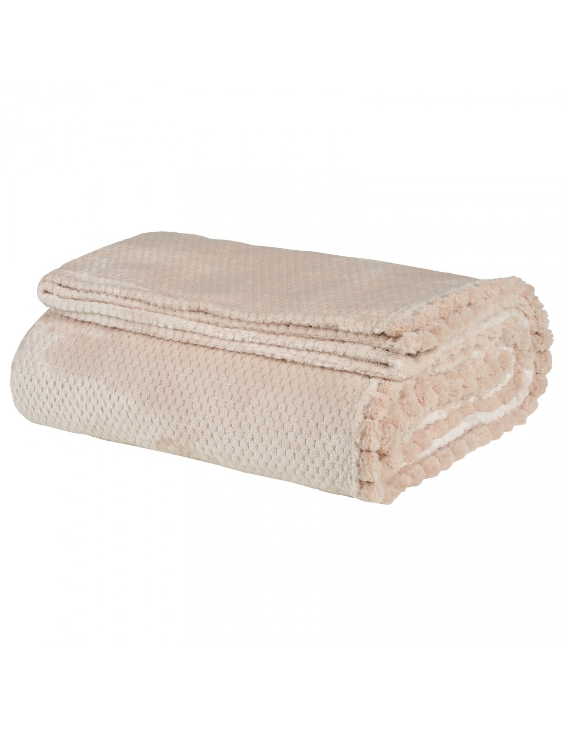 Κουβέρτα μονόχρωμη fleece με ανάγλυφο σχέδιο και pom-pom στις 3 πλευρές. Είναι απο 100% polyester, με βάρος 330gr/m², υποαλλεργική, ιδιαίτερα ζεστή, απαλή στην υφή και έχει μεγάλη αντοχή στη χρήση. Διατίθεται σε διάσταση 220X240εκ. Das home...makes your house a home!
