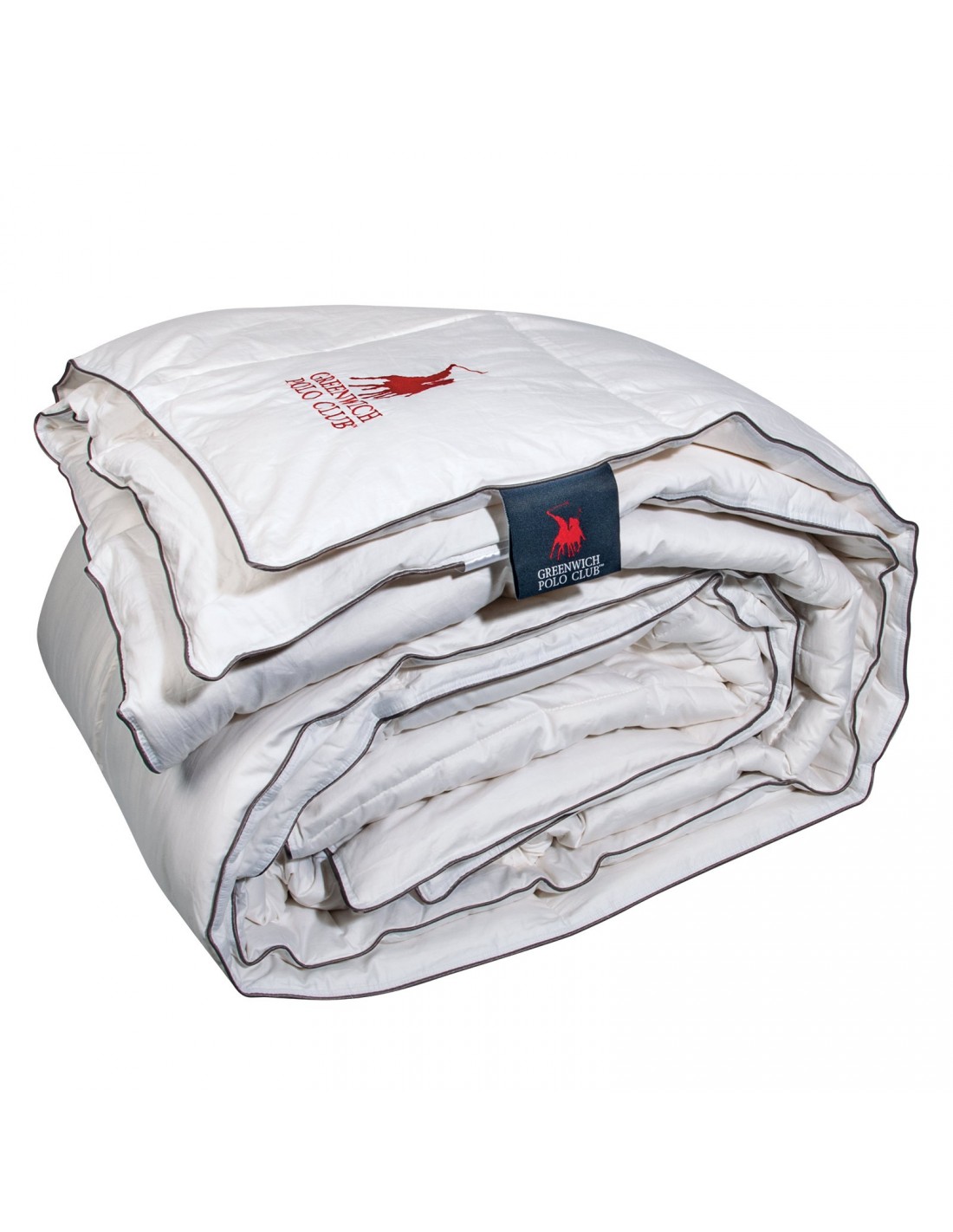 Πουπουλένιο πάπλωμα Greenwich Polo Club της σειράς Essential. Έχει εξωτερικό ύφασμα 100% cotton, πυκνότητας 400TC ενώ το εσωτερικό του είναι από 95% Siberian white Goose Down 300gr/m2 και 5% φτεράκι. Είναι ιδιαίτερα απαλό, ζεστό και ελαφρύ με θερμότητα 12.5 Tog. Προσφέρεται στη διάσταση 240X260εκ. Επιλέξτε Greenwich Polo Club για να απολαύσετε ποιότητα, στυλ και πολυτέλεια.
