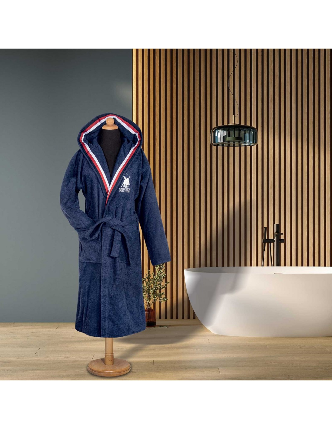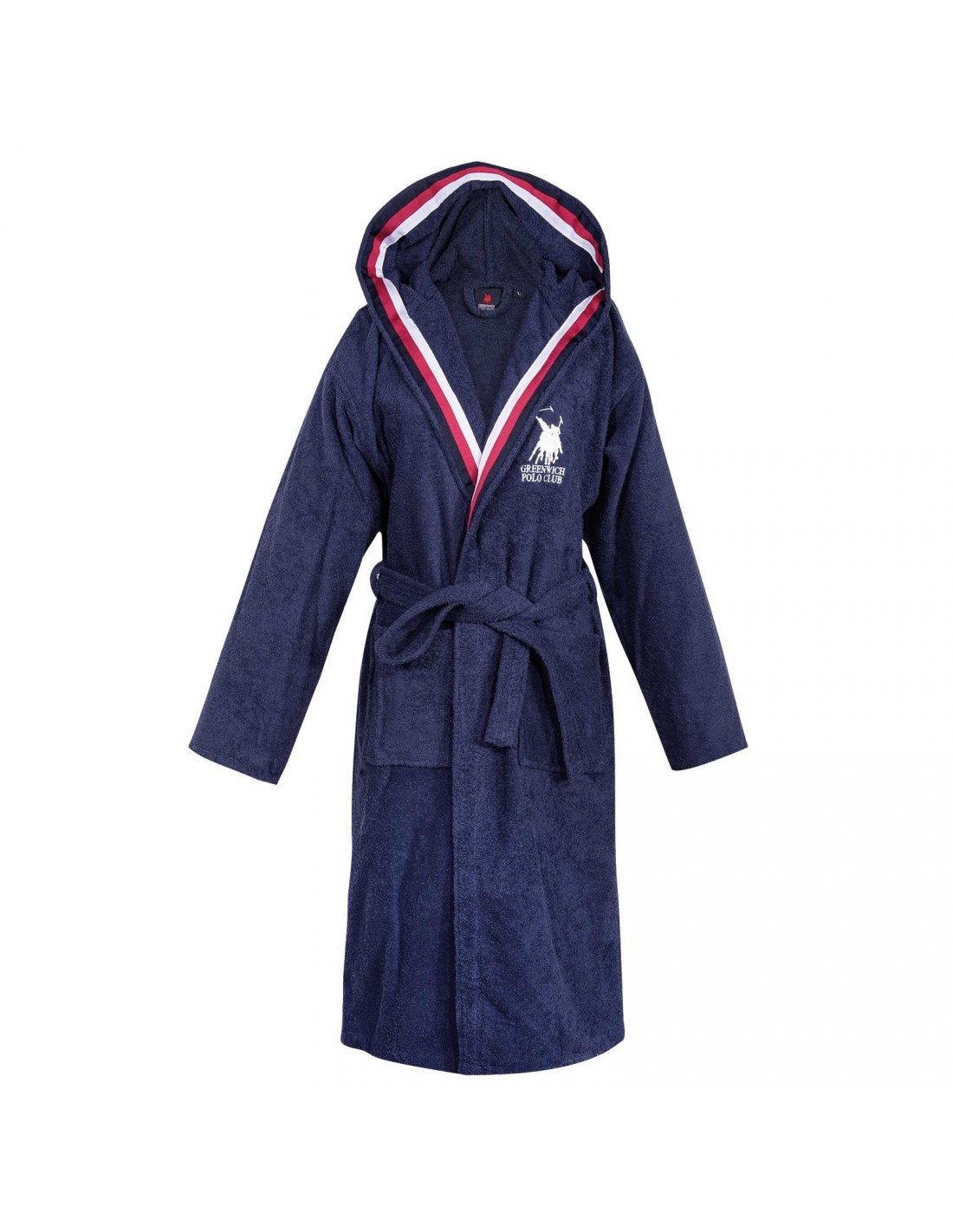 Ζακάρ μπουρνούζι της σειράς Essential, με διακοσμητική τρέσσα. Είναι από 100% βαμβάκι υψηλής ποιότητας, ιδιαίτερα απορροφητικό και ανθεκτικό στη χρήση, με βάρος 420gr/m2. Τα χρώματα που χρησιμοποιούνται είναι ανεξίτηλα και υποαλλεργικά. Διαθέσιμο σε μέγεθος Large. Επιλέξτε Greenwich Polo Club και απολαύστε ποιότητα, στυλ και πολυτέλεια.