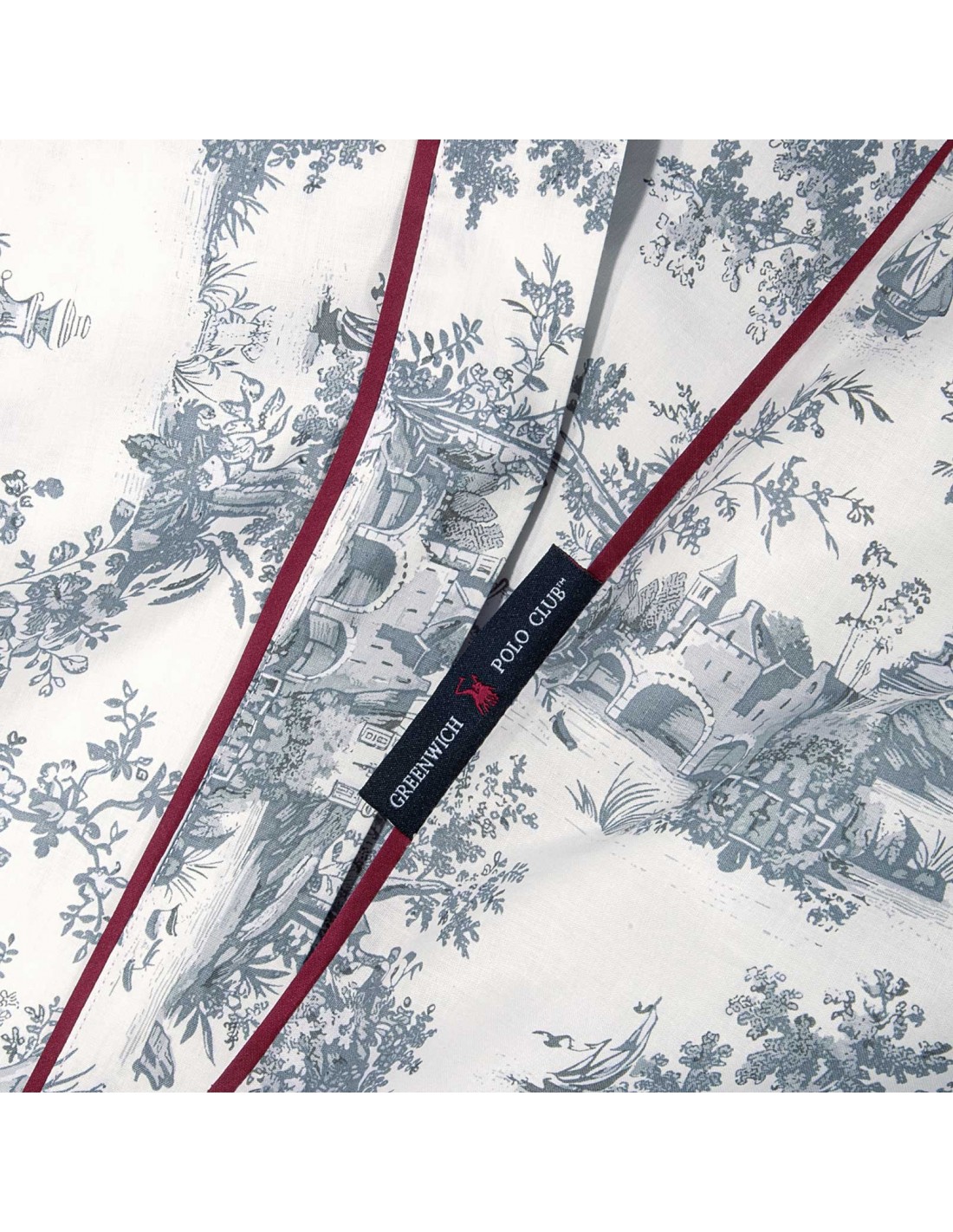 Εμπριμέ σετ παπλωματοθήκη Greenwich Polo Club με περιμμετρικό μονόχρωμο ρέλι της σειράς Εssential. Το ύφασμα είναι από υποαλλεργικό 100% βαμβάκι, με πυκνότητα ύφανσης 160TC και με ειδική επεξεργασία για εύκολο σιδέρωμα. Το σετ αποτελείται από μία παπλωματοθήκη διαστάσεων 220Χ240εκ και δύο μαξιλαροθήκες 50Χ70εκ. Αυτό που χαρακτηρίζει την συλλογή είναι τα ιδιαίτερα σχέδια και οι χαρακτηριστικές αποχρώσεις. Επιλέξτε Greenwich Polo Club για να απολαύσετε ποιότητα, στυλ και πολυτέλεια.