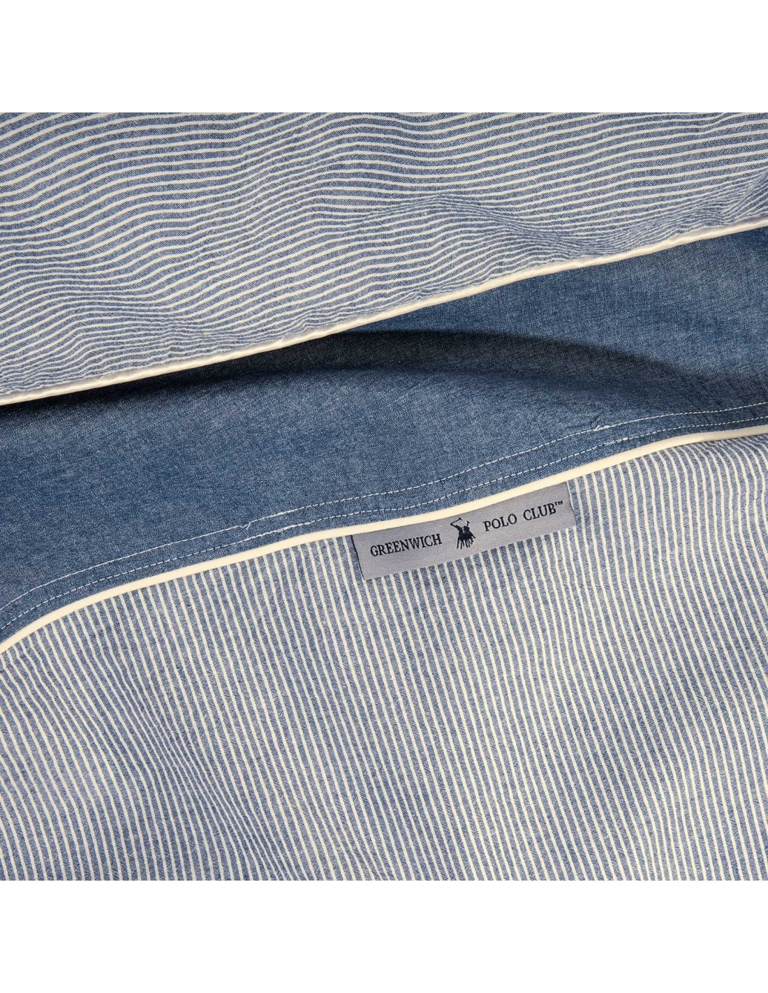 Σετ παπλωματοθήκη Greenwich Polo Club, prewashed νηματοβαφή της σειράς Εssential. Το ύφασμα του είναι από υποαλλεργικό 100% βαμβάκι υψηλής ποιότητας με πυκνότητα ύφανσης 160TC και με ειδική επεξεργασία για εύκολο σιδέρωμα. Το σετ αποτελείται από μία παπλωματοθήκη διαστάσεων 220Χ240εκ και δύο μαξιλαροθήκες 50Χ70+2εκ. Αυτό που χαρακτηρίζει την συλλογή είναι τα ιδιαίτερα σχέδια και οι χαρακτηριστικές αποχρώσεις. Επιλέξτε Greenwich Polo Club για να απολαύσετε ποιότητα, στυλ και πολυτέλεια.