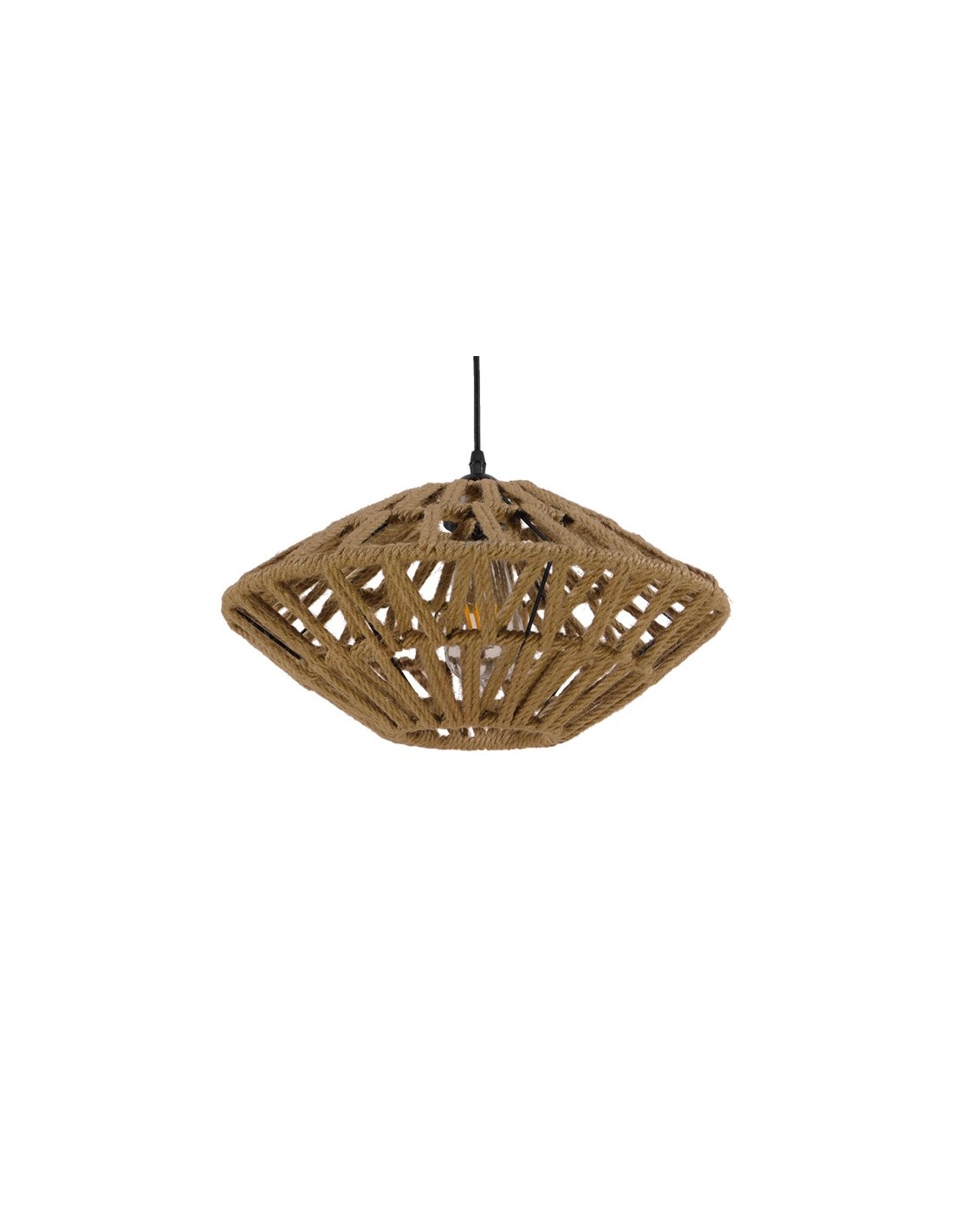 GloboStar® NATHLEN 01187 Vintage Κρεμαστό Φωτιστικό Οροφής Μονόφωτο 1 x E27 Μαύρο Μεταλλικό Πλέγμα με Μπεζ Σχοινί Φ40 x Y20cm