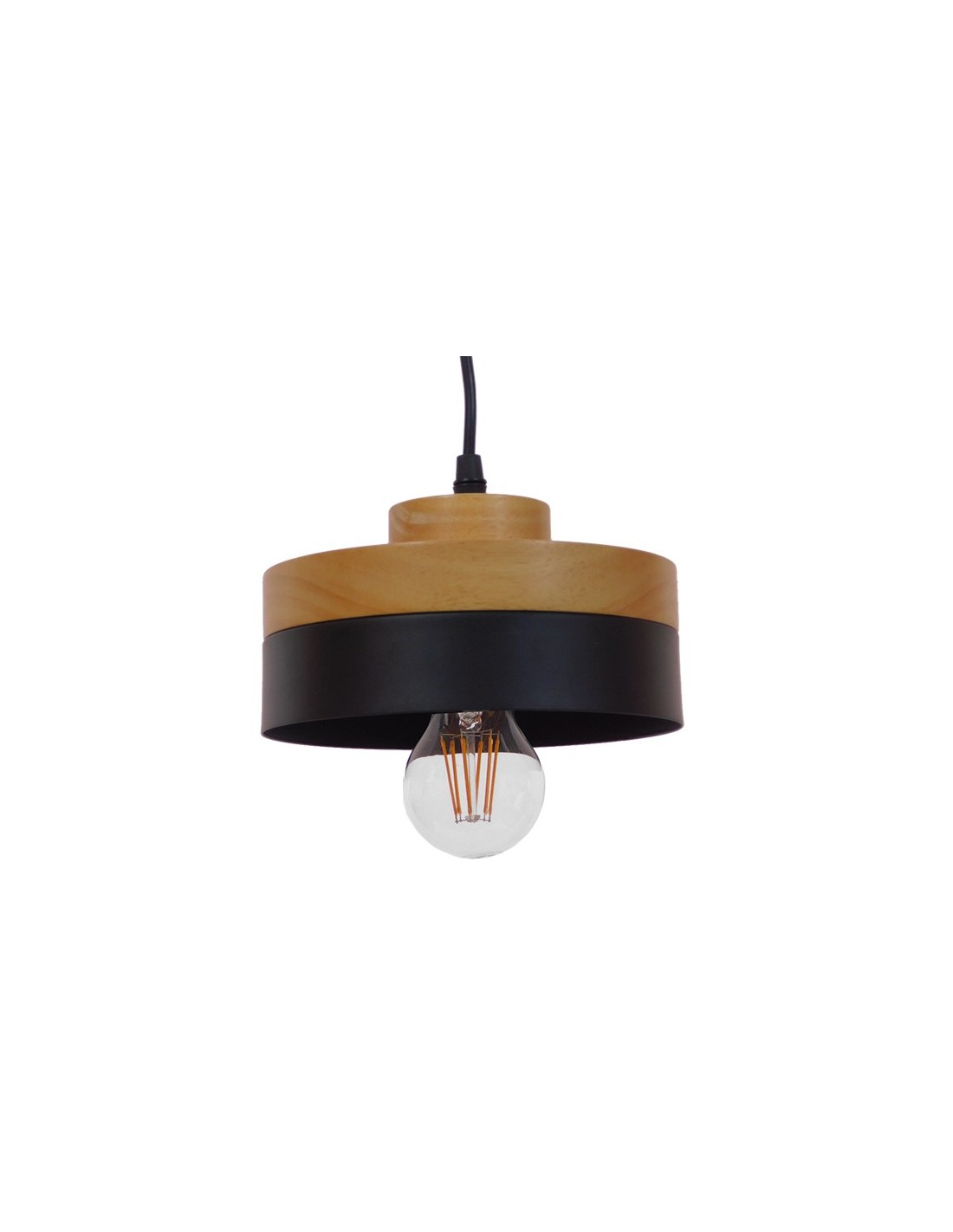 GloboStar® RUHIEL 01233 Μοντέρνο Κρεμαστό Φωτιστικό Οροφής Μονόφωτο 1 x E27 Μαύρο Μεταλλικό με Φυσικό Ξύλο Καμπάνα Φ18 x Y12cm