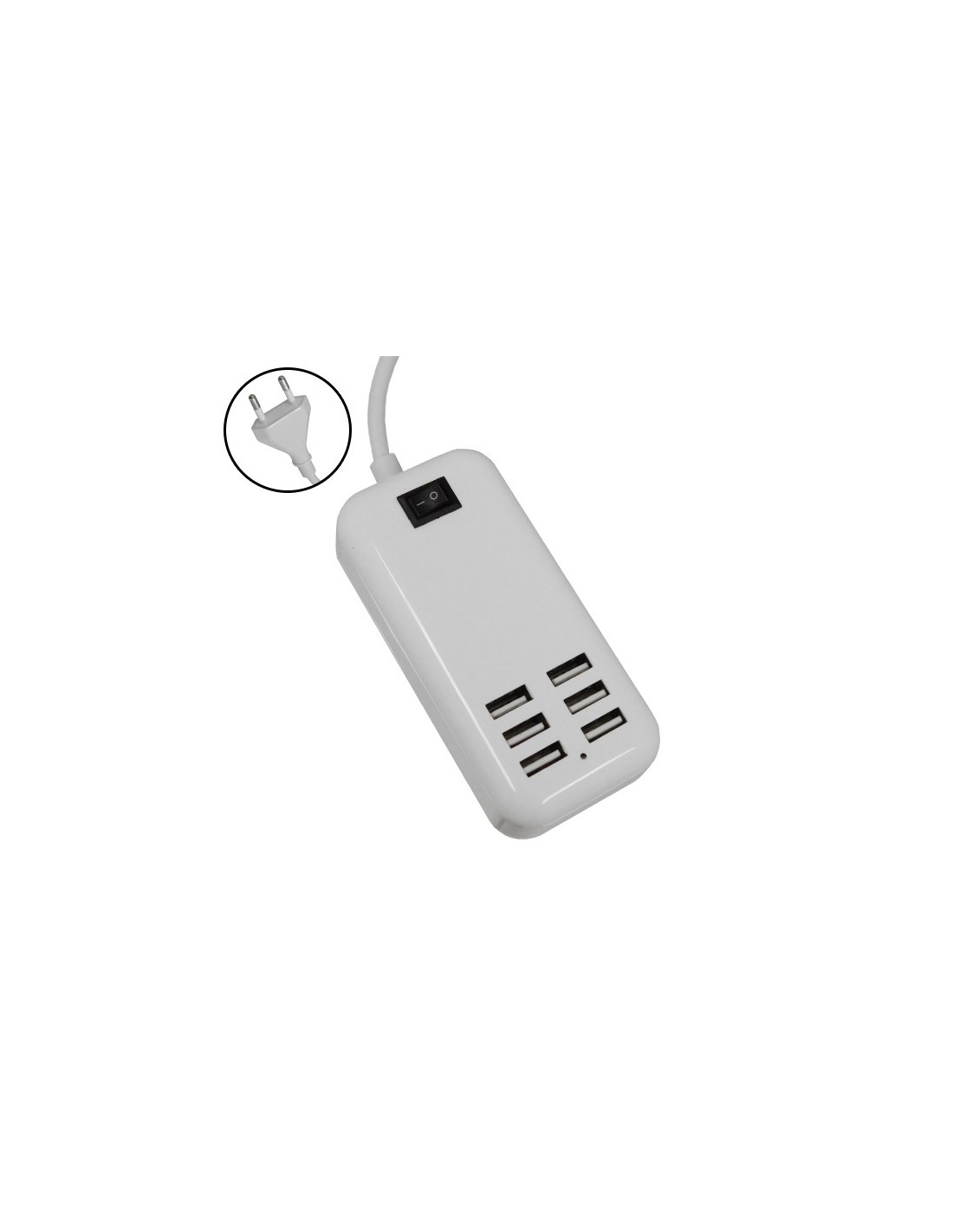 Φορτιστής USB 6 Θέσεων με ON / OFF Διακόπτη 4A 20 Watt 5V DC Λευκός GloboStar 69998