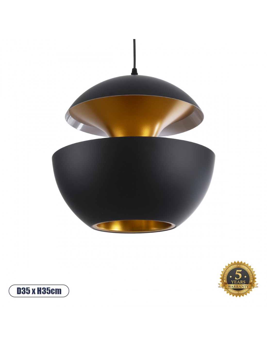 GloboStar® SEVILLE BLACK 01269 Μοντέρνο Κρεμαστό Φωτιστικό Οροφής Μονόφωτο 1 x E27 AC220-240V IP20 - Φ35 x Υ35cm - Μαύρο Μεταλλικό Φιγούρα