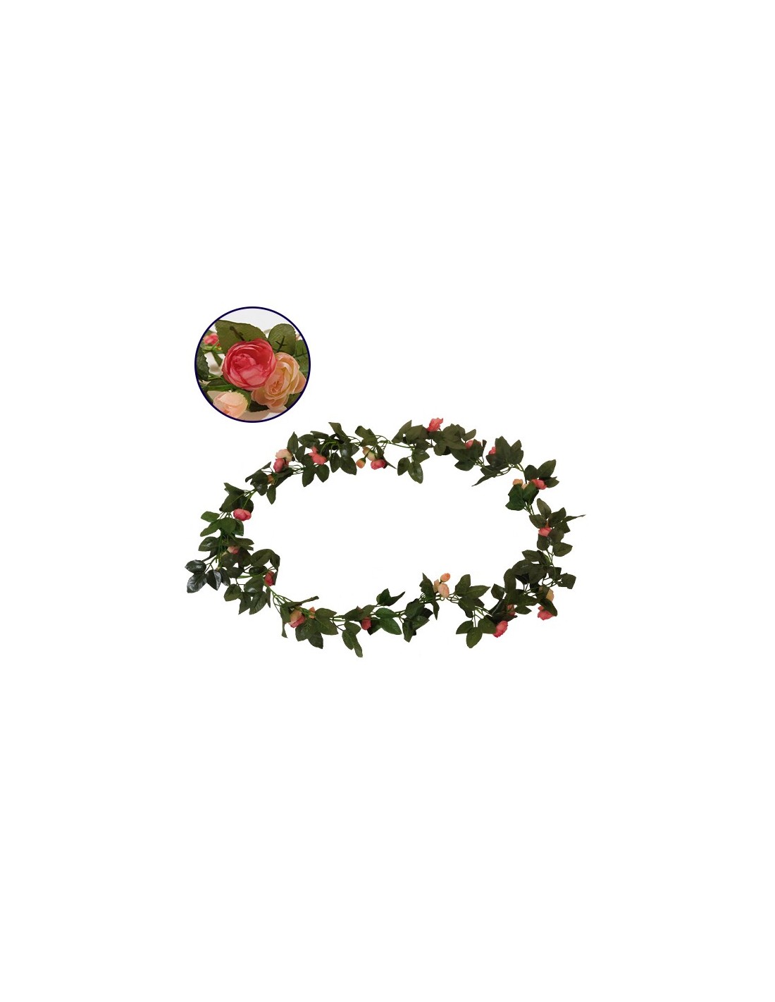 GloboStar® 09009 Τεχνητό Κρεμαστό Φυτό Διακοσμητική Γιρλάντα Μήκους 2.2 μέτρων με 32 X Μικρά Τριαντάφυλλα Σομόν Κοραλί