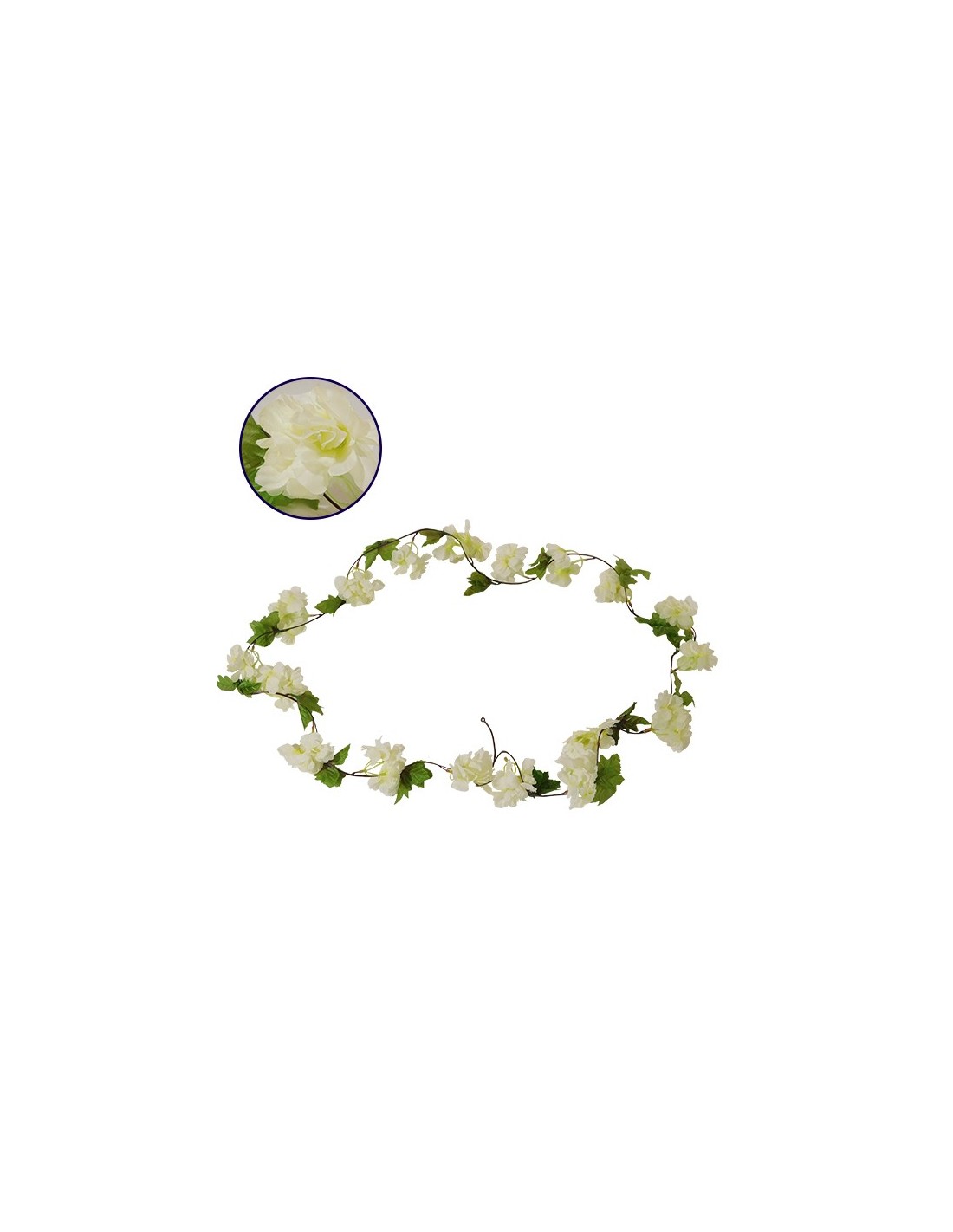 GloboStar® 09025 Τεχνητό Κρεμαστό Φυτό Διακοσμητική Γιρλάντα Μήκους 2.2 μέτρων με 18 X Άνθη Κερασιάς Λευκό