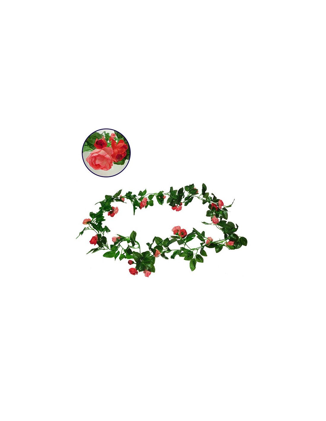 GloboStar® 09011 Τεχνητό Κρεμαστό Φυτό Διακοσμητική Γιρλάντα Μήκους 2.2 μέτρων με 32 X Μικρά Τριαντάφυλλα Ροζ Κοραλί