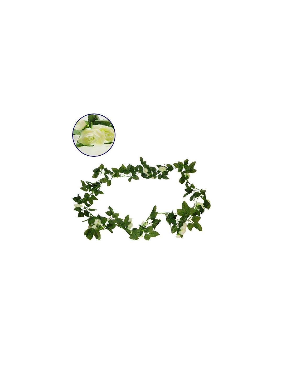 GloboStar® 09012 Τεχνητό Κρεμαστό Φυτό Διακοσμητική Γιρλάντα Μήκους 2.2 μέτρων με 32 X Μικρά Τριαντάφυλλα Λευκά