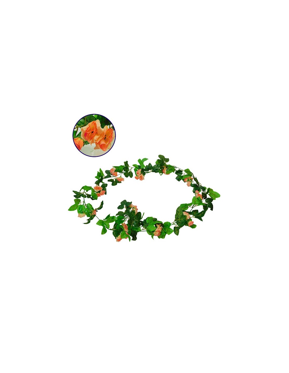 GloboStar® 09015 Τεχνητό Κρεμαστό Φυτό Διακοσμητική Γιρλάντα Μήκους 2.2 μέτρων με 33 X Μικρά Τριαντάφυλλα Σομόν