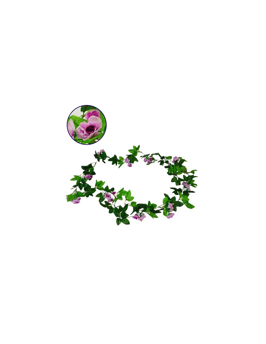 LedkingGloboStar® 09016 Τεχνητό Κρεμαστό Φυτό Διακοσμητική Γιρλάντα Μήκους 2.2 μέτρων με 33 X Μικρά Τριαντάφυλλα Μωβ Λευκά